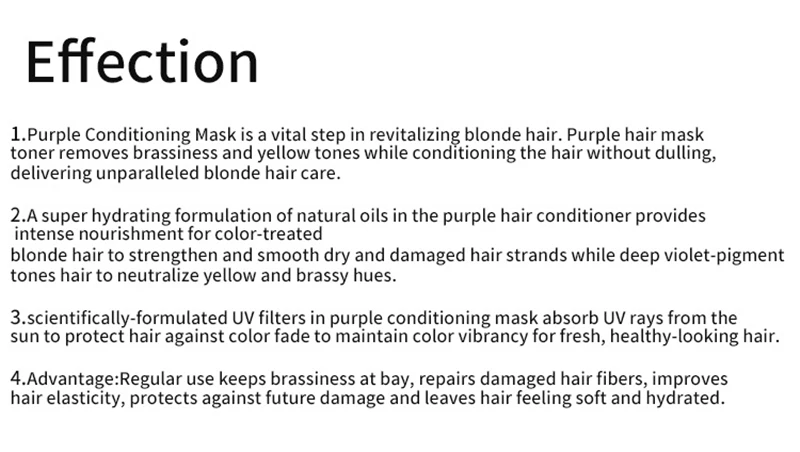 - Cabelos Brilhantes: Rico em pigmento roxo, atua como um toner neutralizando tons amarelados indesejados, restaurando o brilho dos fios.