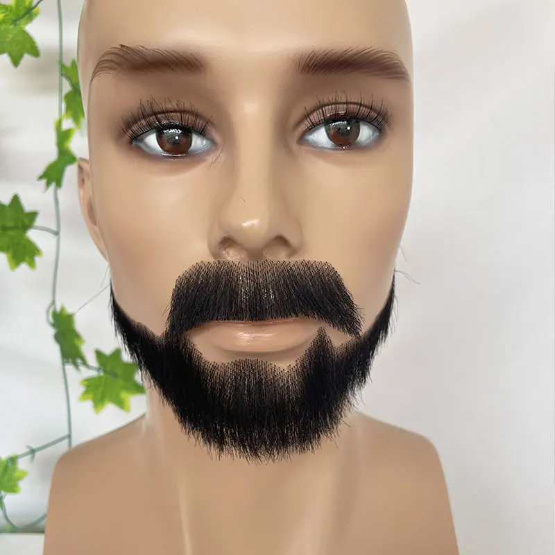 🌟 Barba e Bigode de Renda Suíça Artesanal para Homens – 100% Cabelo Humano, Cor Marrom, Invisível 🌟