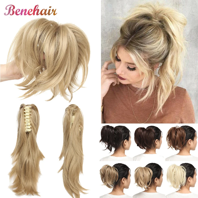 ✨💁🏽♀️ BENEHAIR Coque com Garra e Rabo de Cavalo Ondulado Despojado 12 Polegadas – Aplique Sintético Feminino