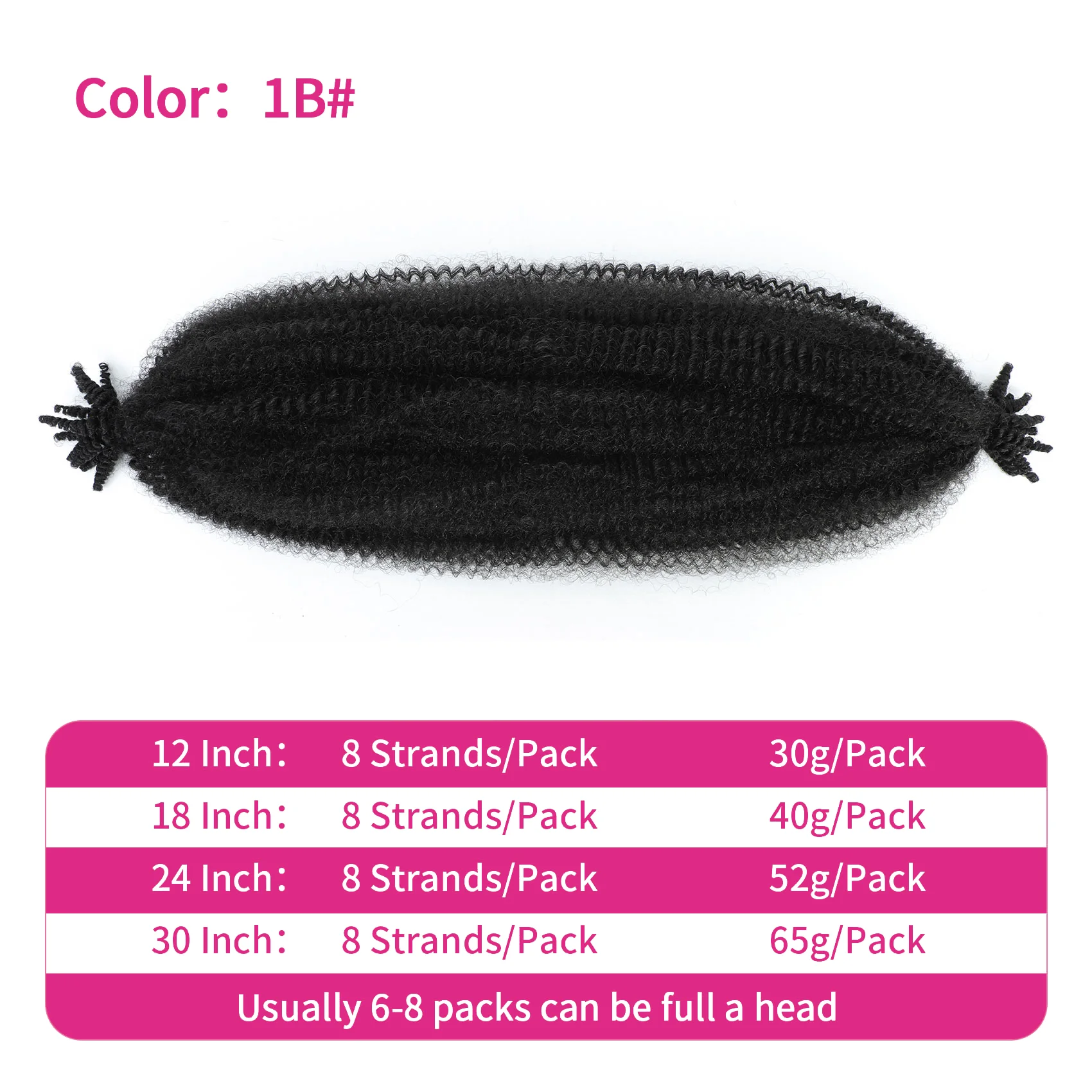 Extensão de Cabelo Sintético Afro Twist Pré-Selecionado para Tranças e Locs Macios 12 a 30 Polegadas
