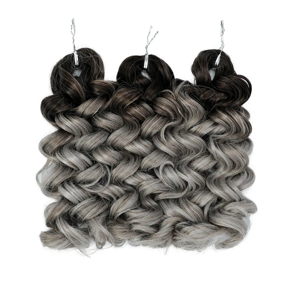 ✨ Cabelo Sintético para Trança Crochê Onda Profunda Ombré Cinza e Marrom – 12 Polegadas ✨