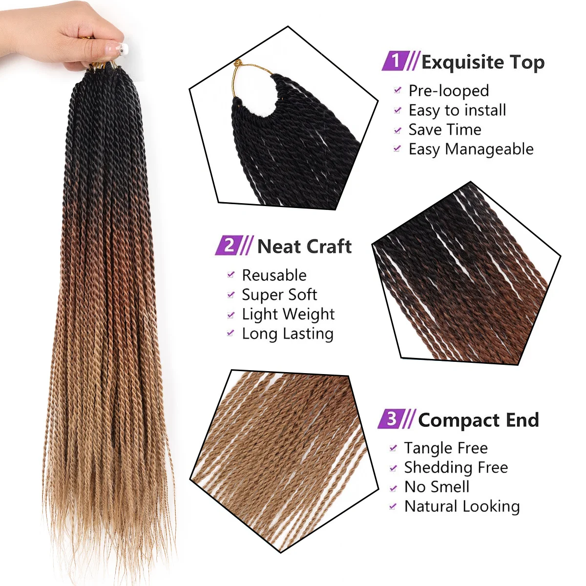 🌟✨ CABELO SINTÉTICO PARA CROCHÊ – TRANÇA SENEGALESA PRÉ-TORCIDA COM LOOP (18″) ✨🌟