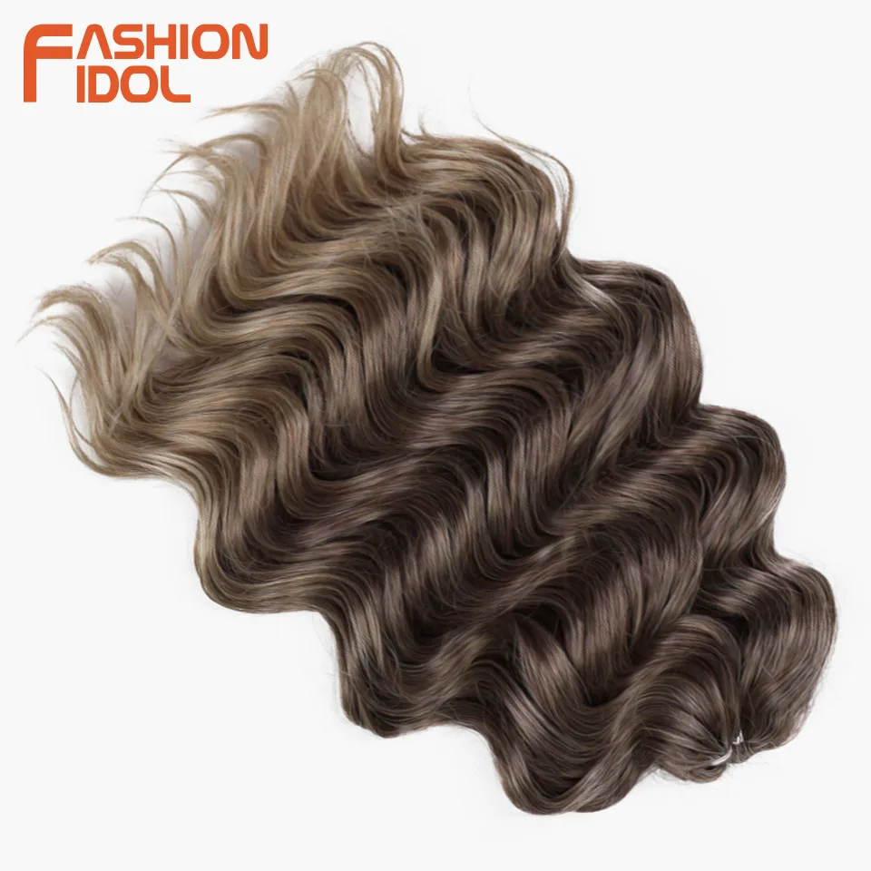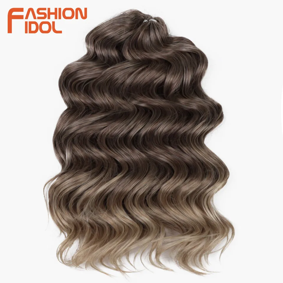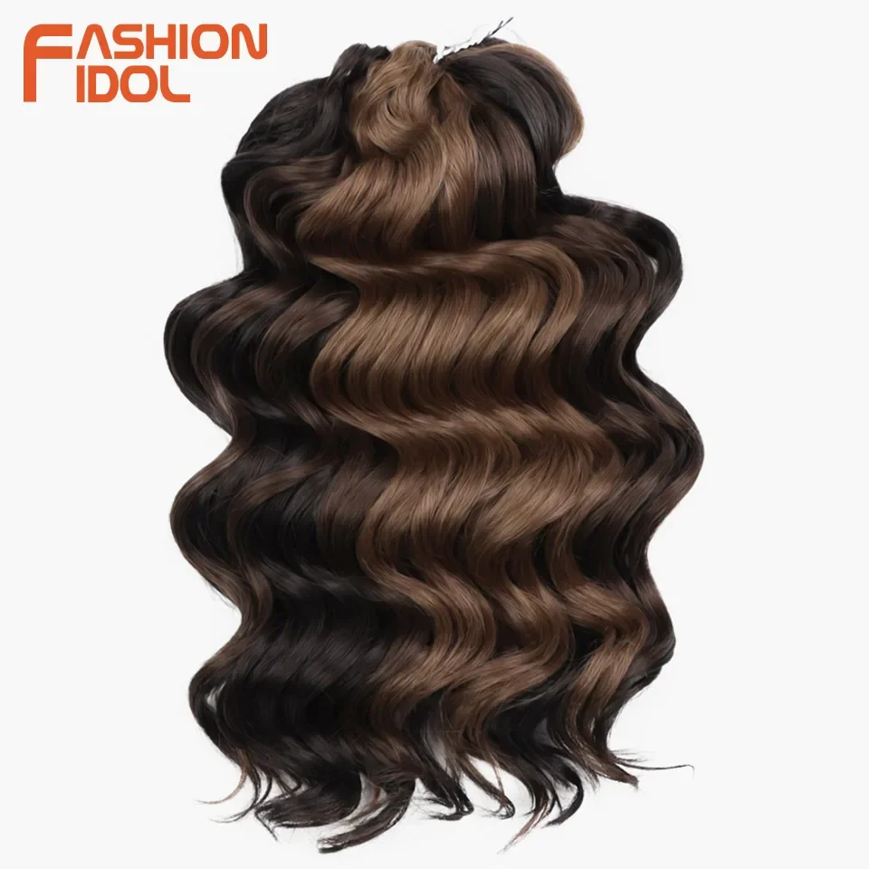 💁♀️ Cabelo Sintético Ondulado para Trança de Crochê – 3 Pacotes, 40cm, Estilo Ídolo, Efeito Ombre Castanho ✨