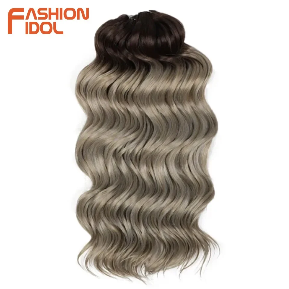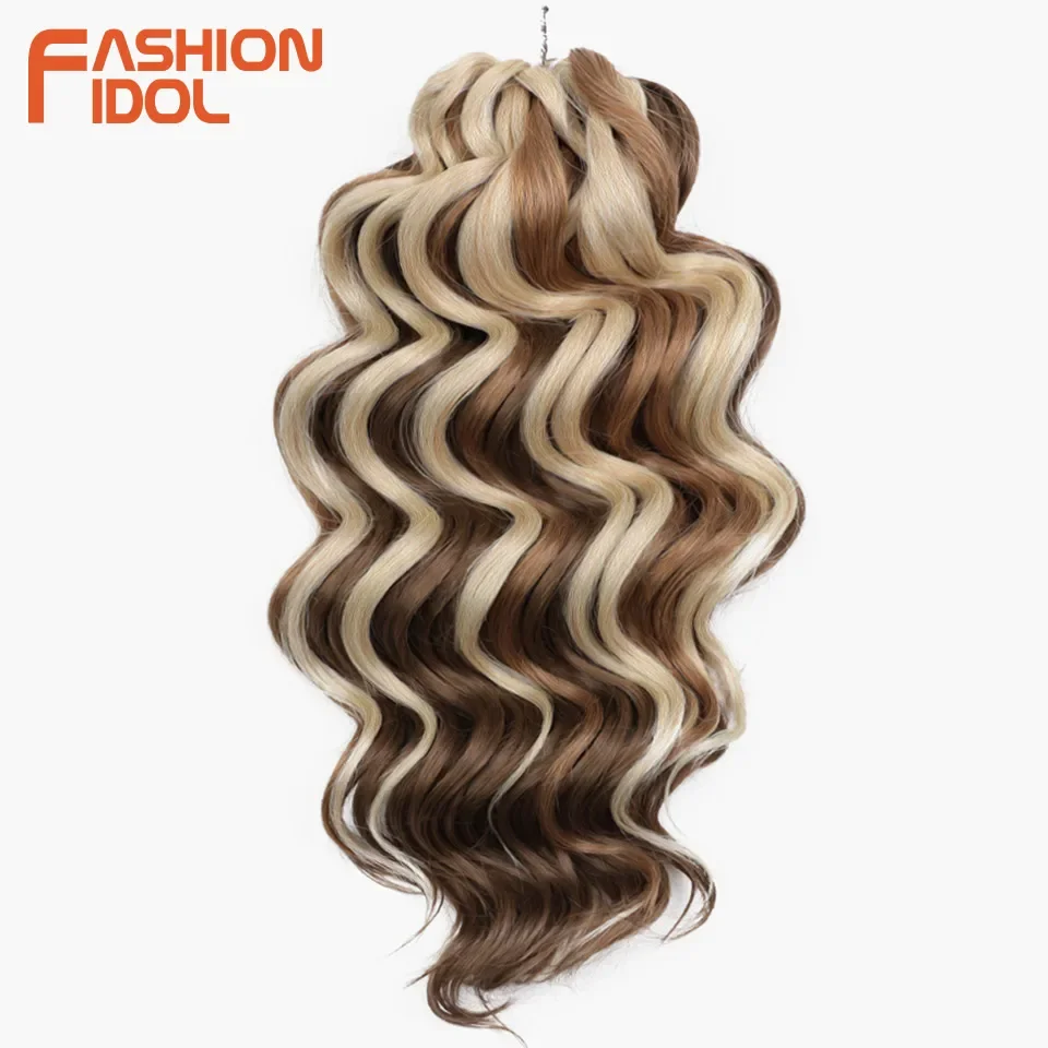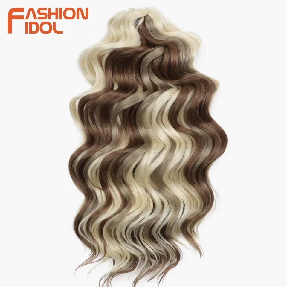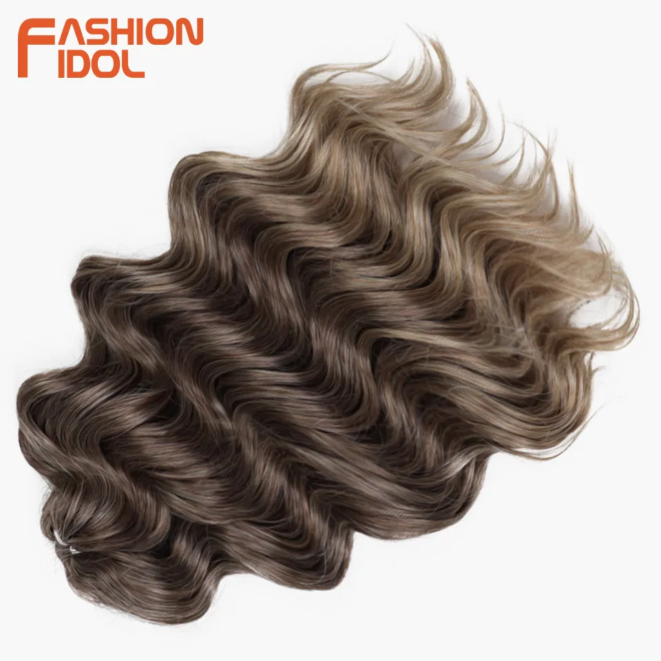 💁♀️ Cabelo Sintético Ondulado para Trança de Crochê – 3 Pacotes, 40cm, Estilo Ídolo, Efeito Ombre Castanho ✨