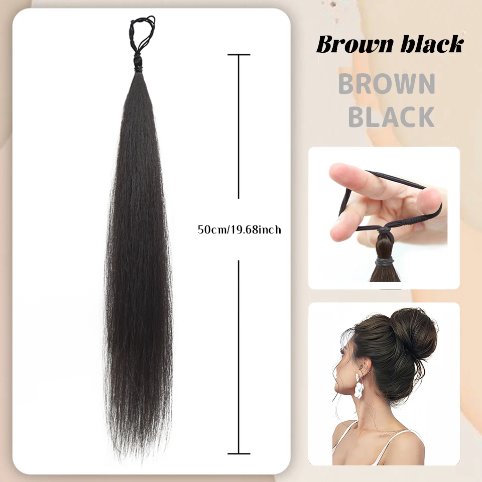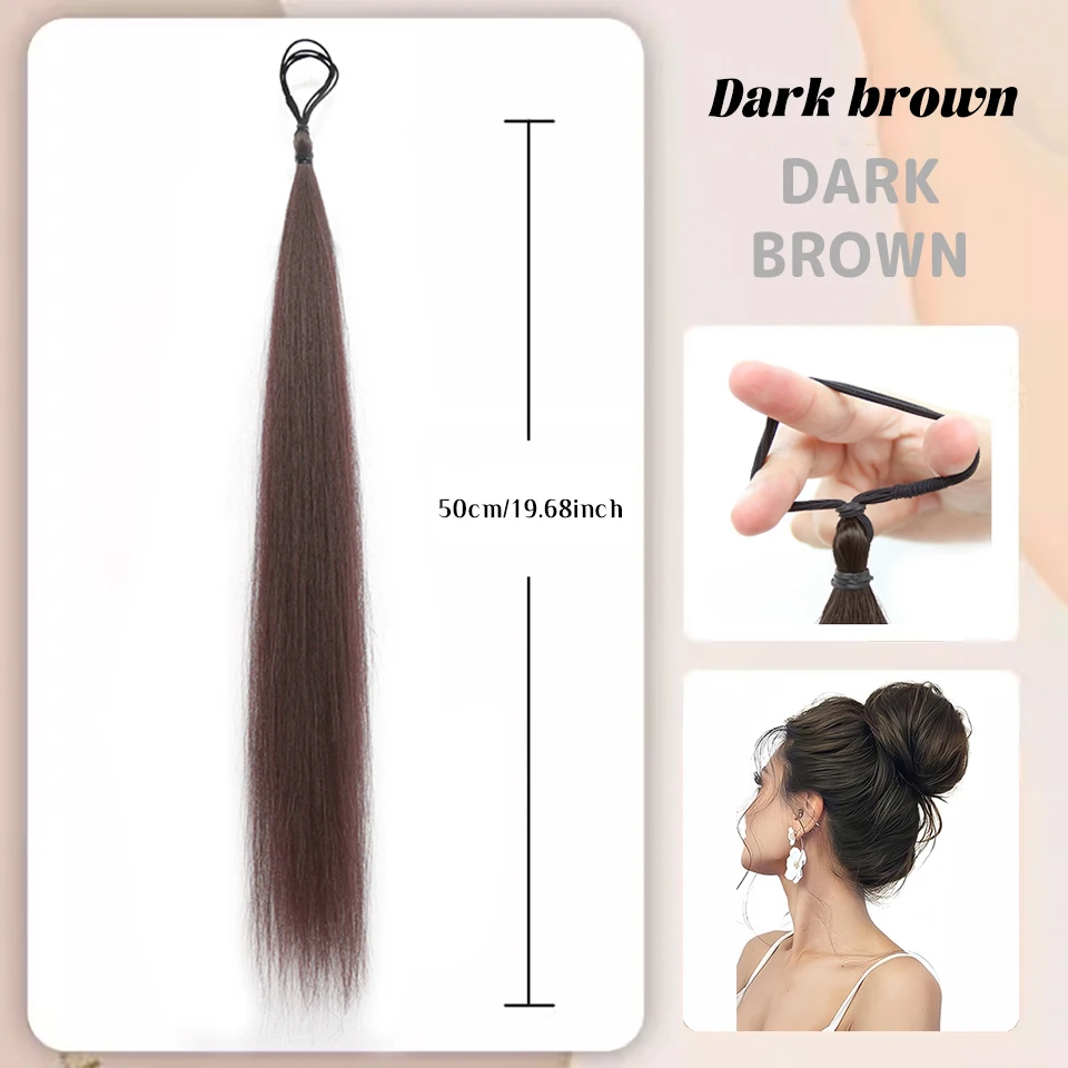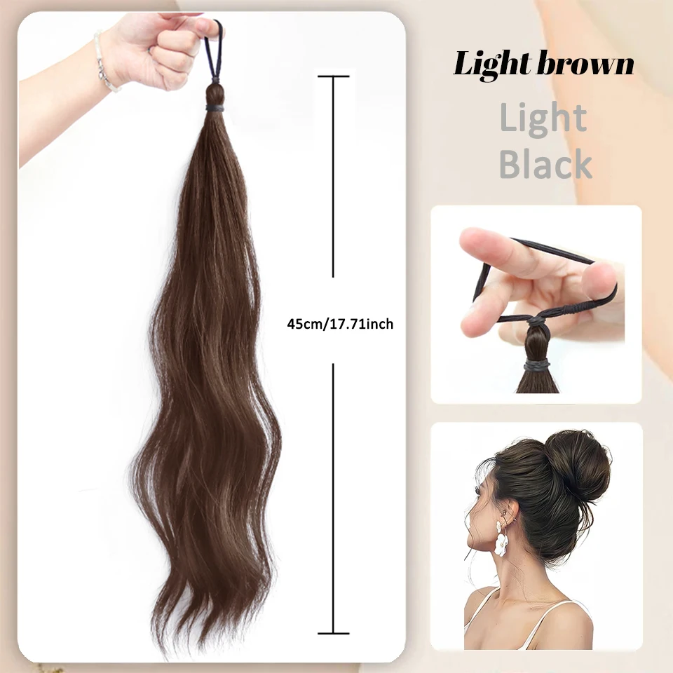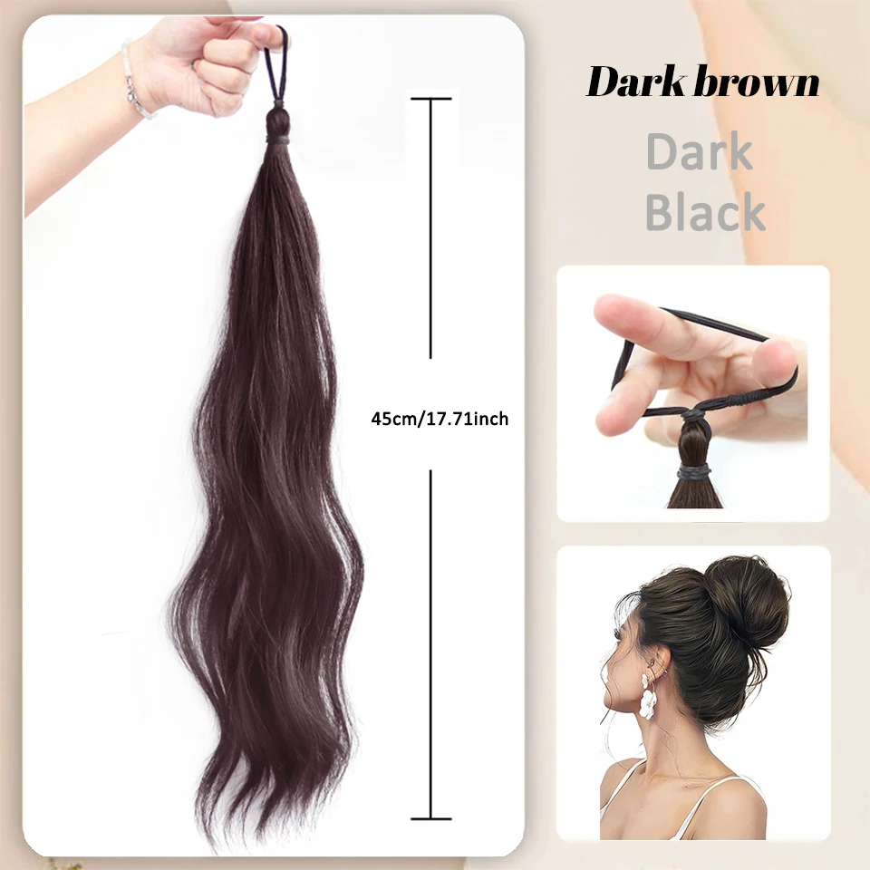 O coque postiço encaracolado com elástico é perfeito para quem deseja um penteado moderno, volumoso e natural. Com franja falsa integrada, ele valoriza o rosto e cria um look completo em poucos segundos!