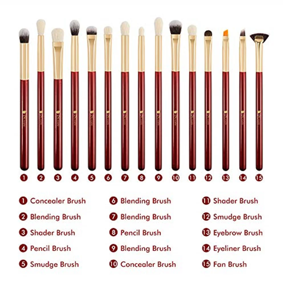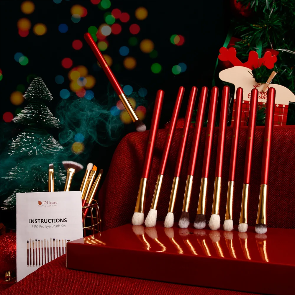 Conjunto de Pincéis de Maquilhagem DUcare – 15 Peças – Branco, Vermelho, Preto