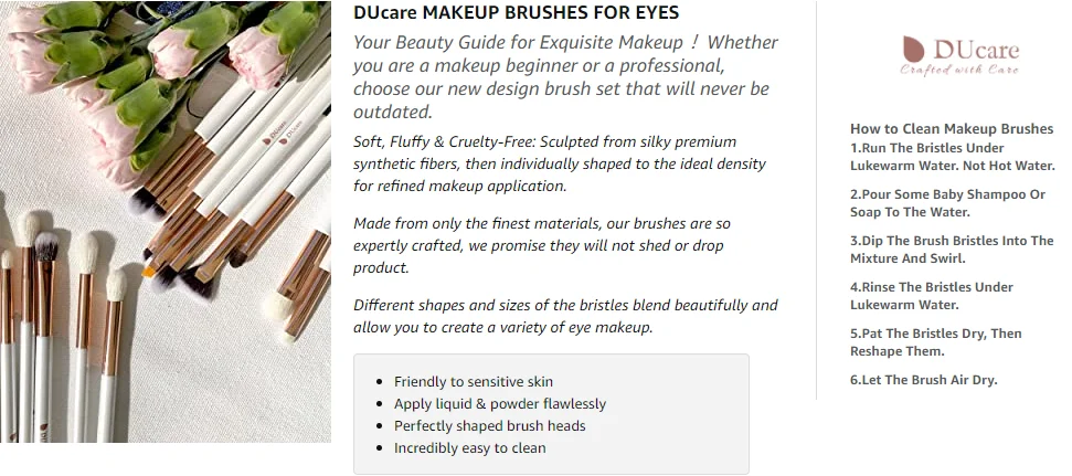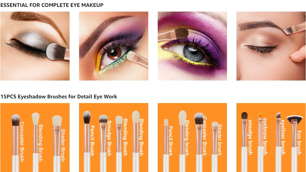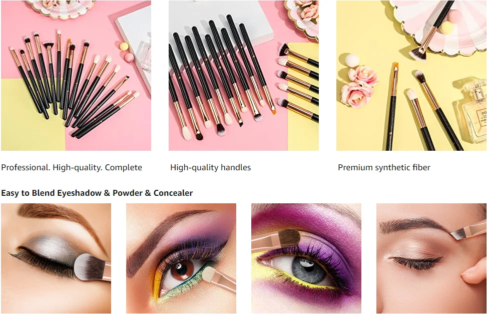 - Aplicação Precisa e Suave: Escovas que misturam perfeitamente loções, cremes para os olhos, sombras e pós.