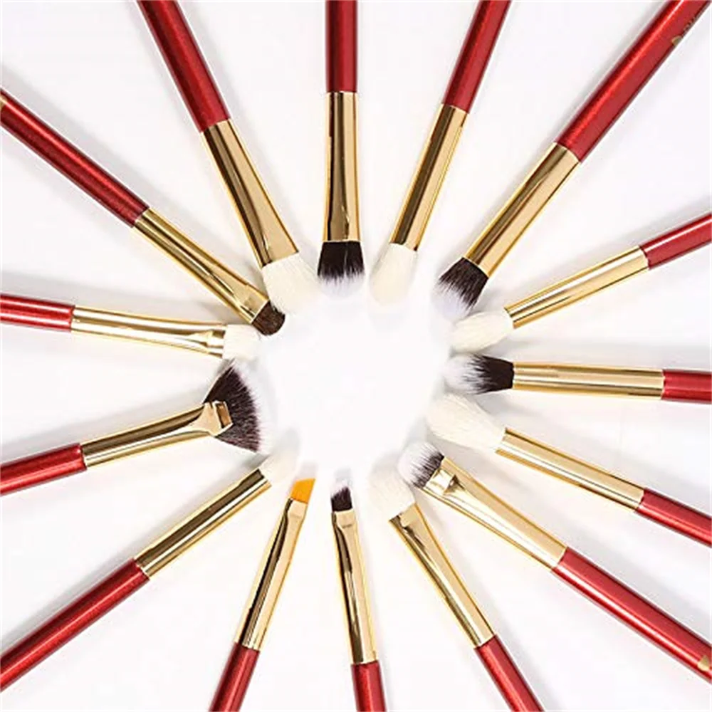 DF1534 – Conjunto de Escovas de Maquilhagem Vermelhas – 15 Peças