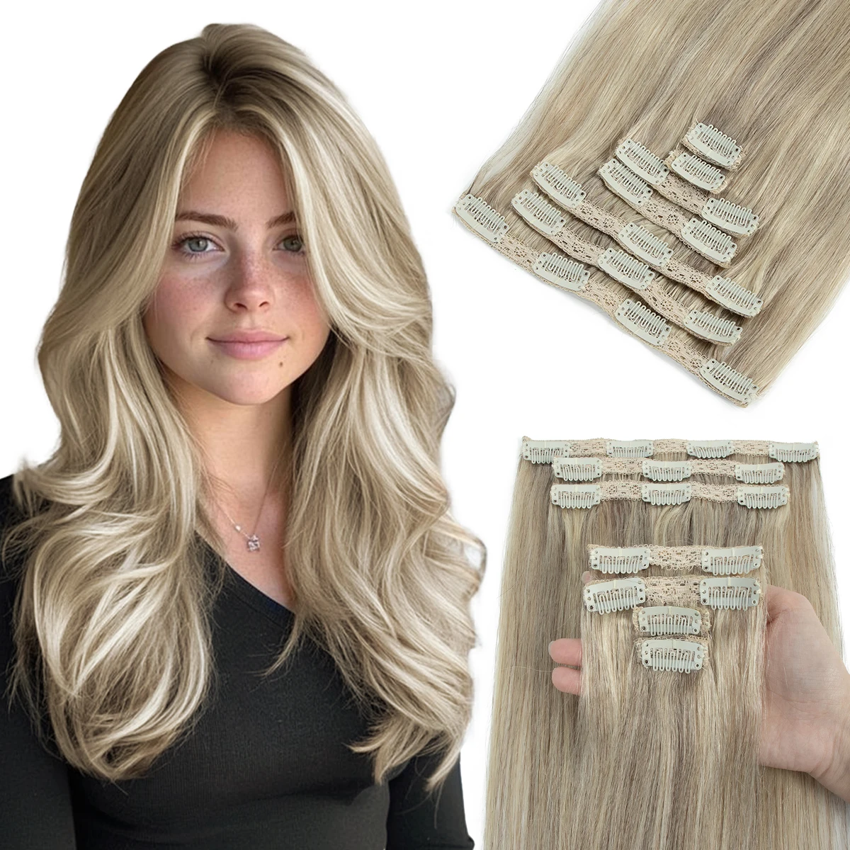 Extensões de cabelo Natural Extensão de Cabelo Humano Natural Loiro com Presilha Tic Tac (Clip-on) – Mega Hair Cabeça Cheia 12 a 24 Polegadas | Loja dos Cabelos