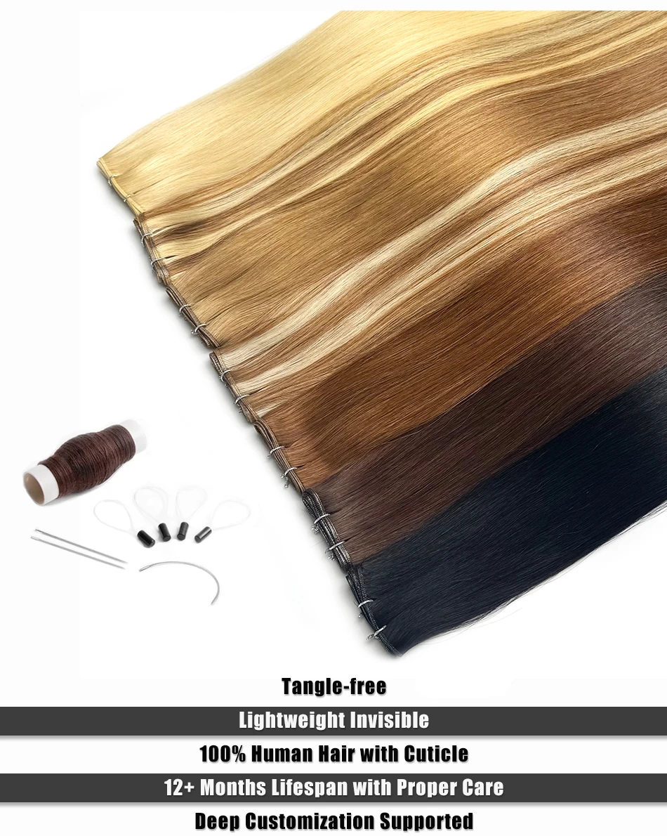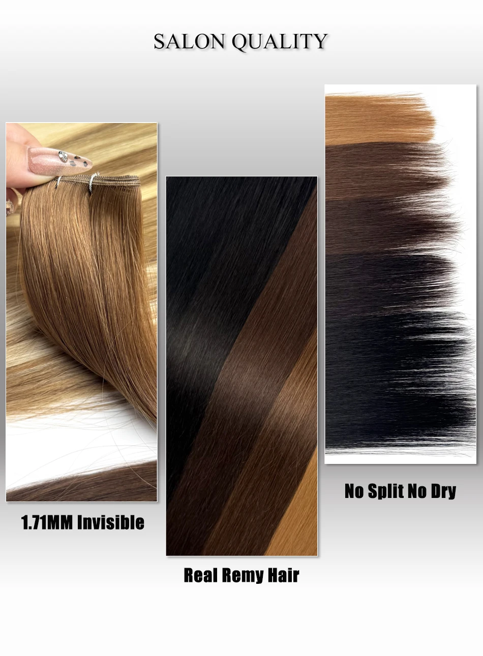 A Genius Weft (trama inteligente) é a escolha ideal para quem busca extensões de alto padrão, com trama ultrafina, discreta e sem volume excessivo na raiz, garantindo um visual leve e sofisticado.