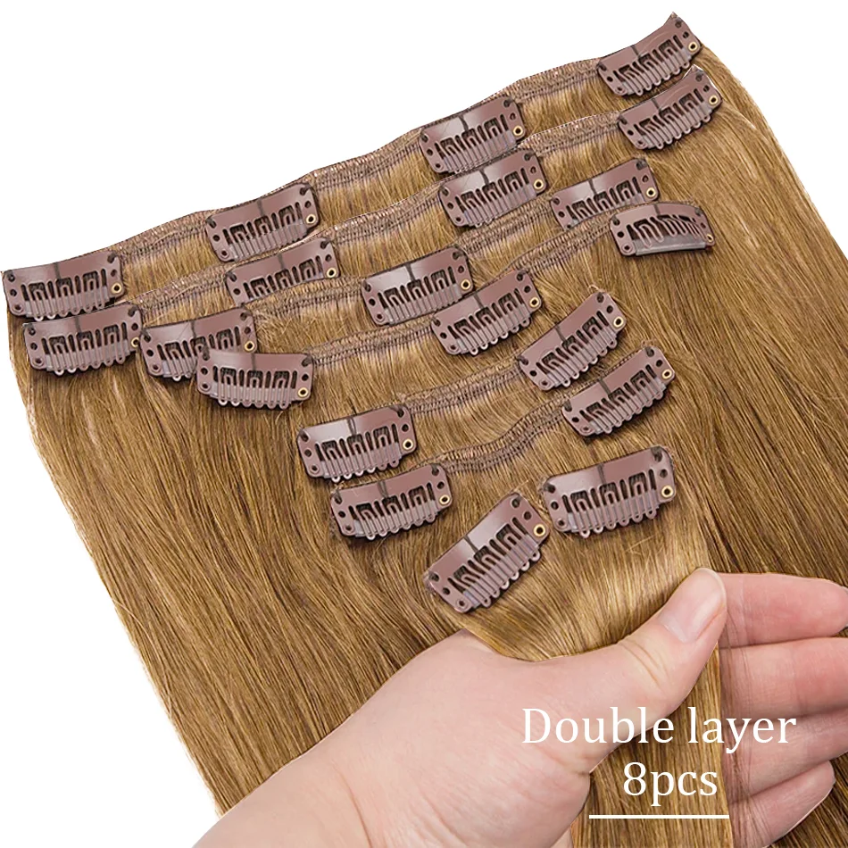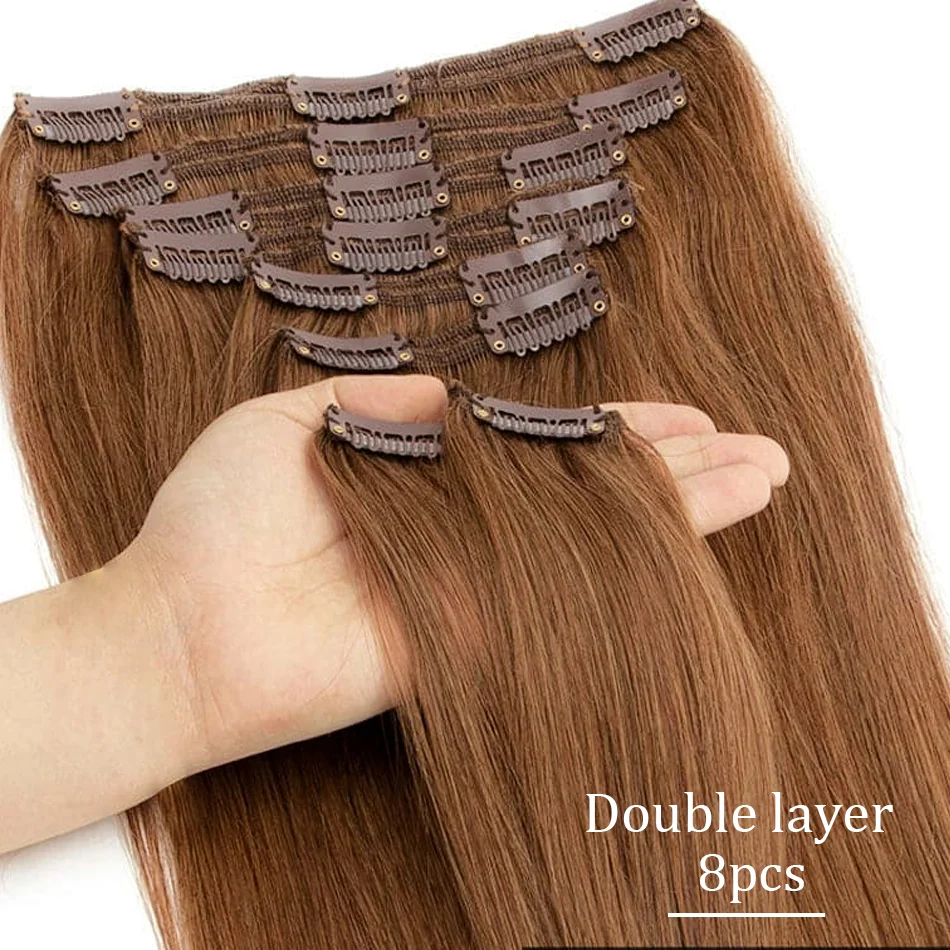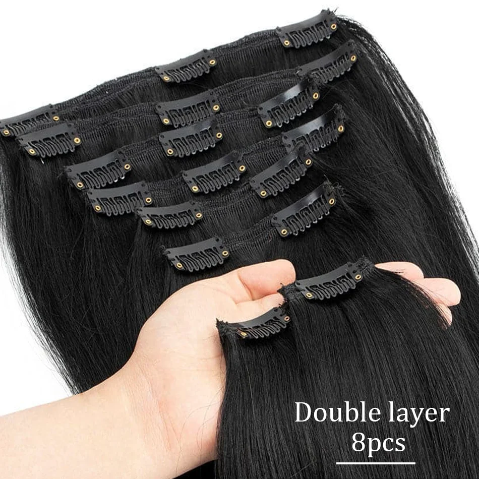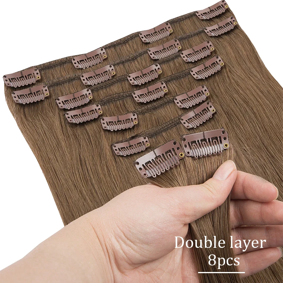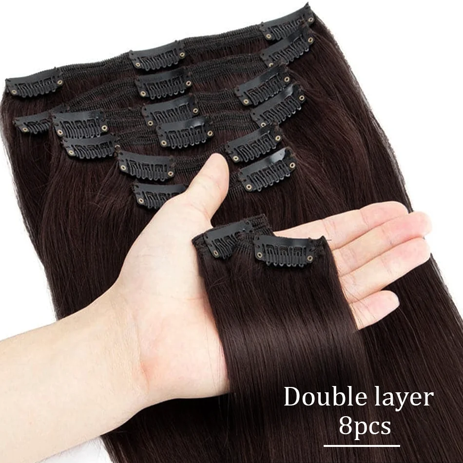 Extensões de cabelo Natural Eotltiue – Cabelo Liso Remy Brasileiro, Extensão de Cabelo Humano com Clipe, Cor Natural, Cabeça Completa 120g, 8 Peças por Conjunto | Loja dos Cabelos