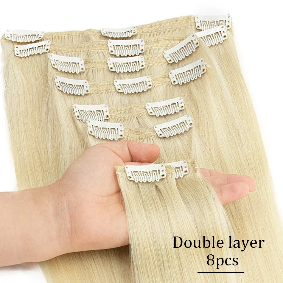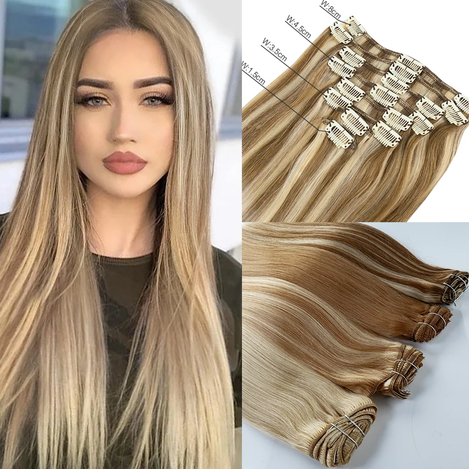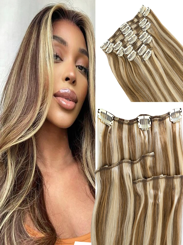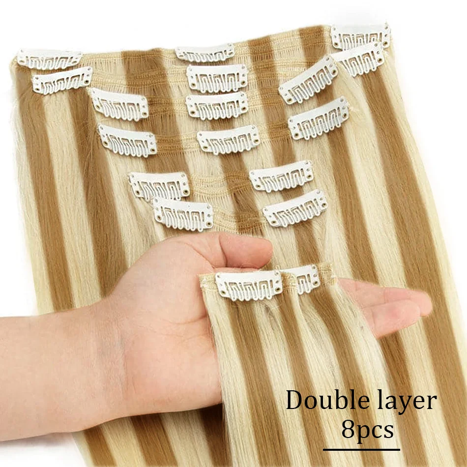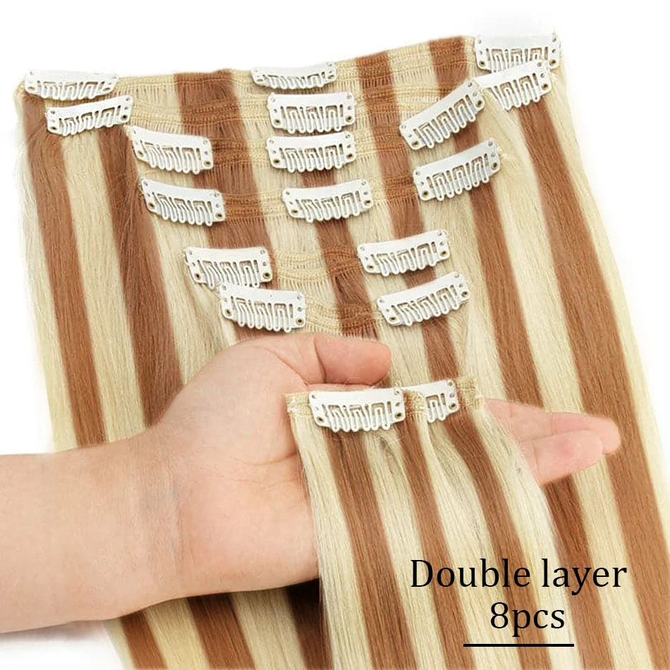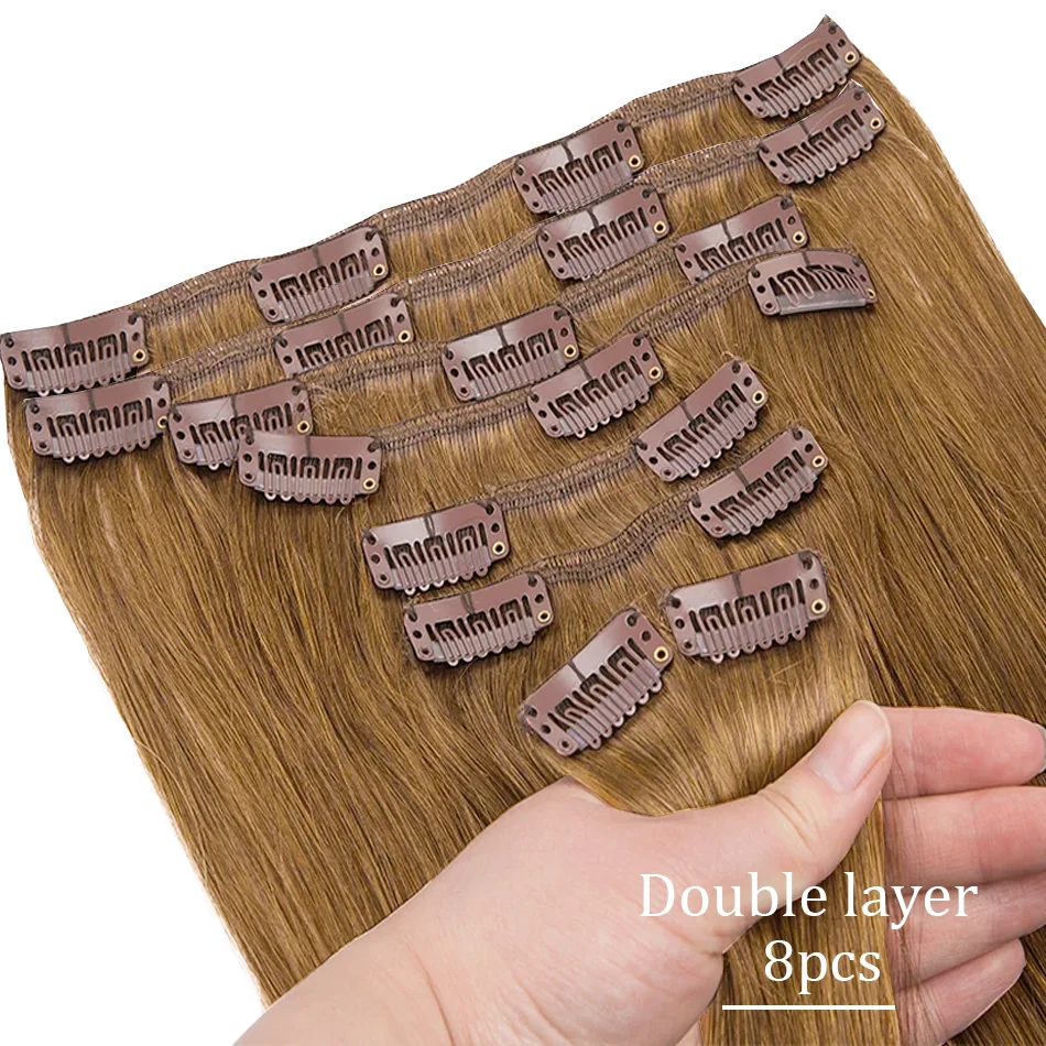 Extensões de cabelo Natural Eotltiue – Cabelo Liso Remy Brasileiro, Extensão de Cabelo Humano com Clipe, Cor Natural, Cabeça Completa 120g, 8 Peças por Conjunto | Loja dos Cabelos