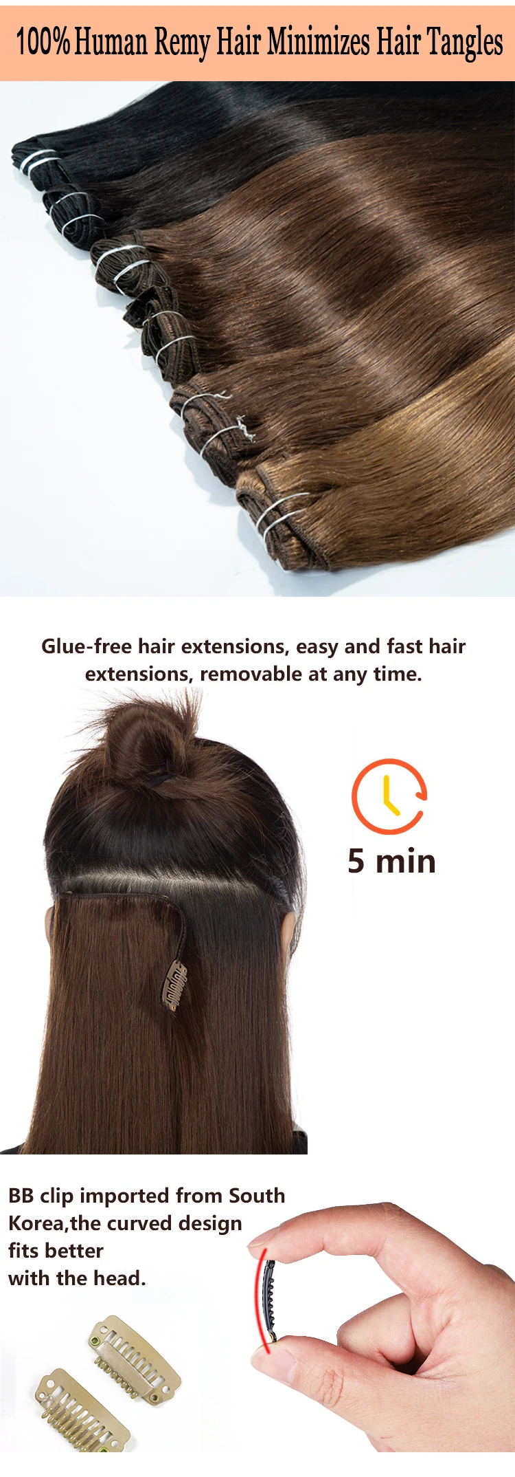 ✔ Fixação segura e confortável – clipes invisíveis, sem danificar o cabelo natural