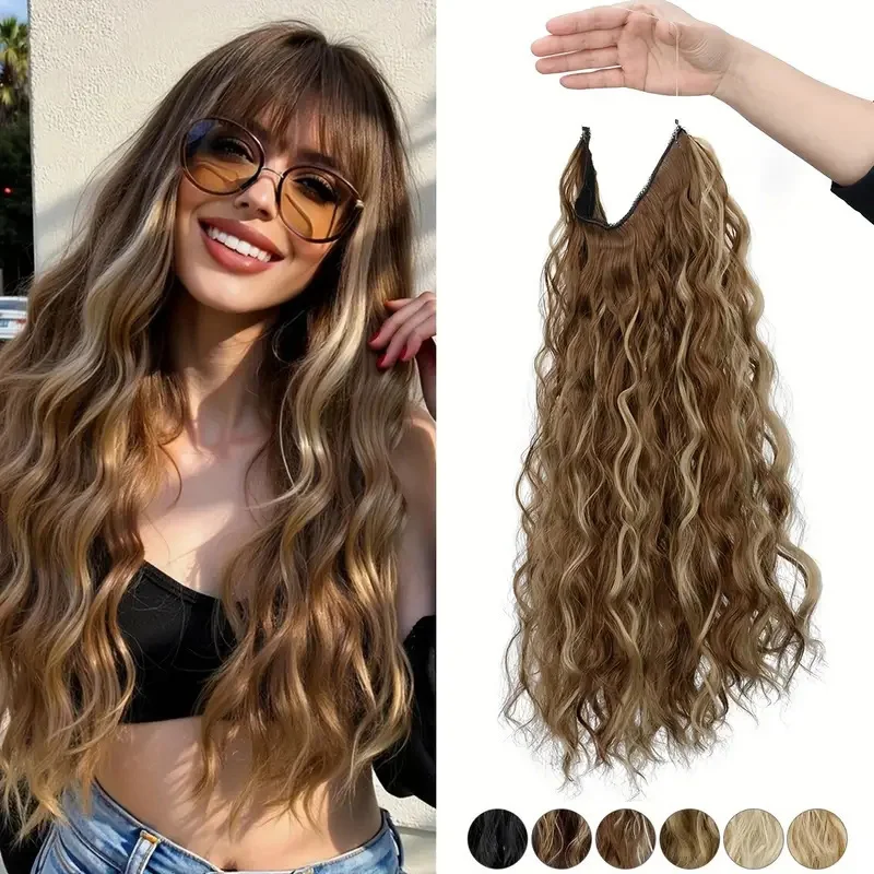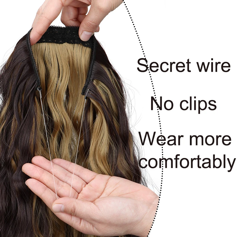 Esta extensão de cabelo sintético com fio invisível é perfeita para quem deseja cabelos mais longos, volumosos e com ondas naturais sem danificar os fios naturais. O sistema de linha de pesca invisível se ajusta discretamente à cabeça, proporcionando fixação confortável e aparência totalmente natural.