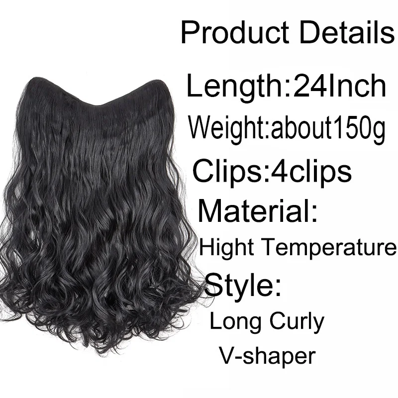 💖✨ Extensão de Cabelo Sintético Longo Cacheado 24 Polegadas em V – Aplique Invisível Natural Preto ou Castanho ✨💖