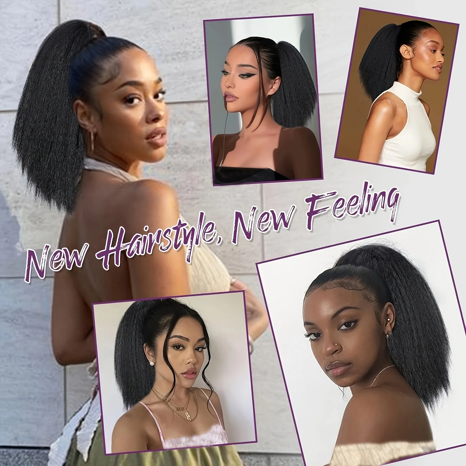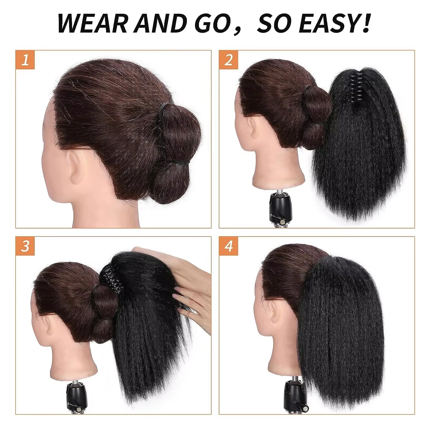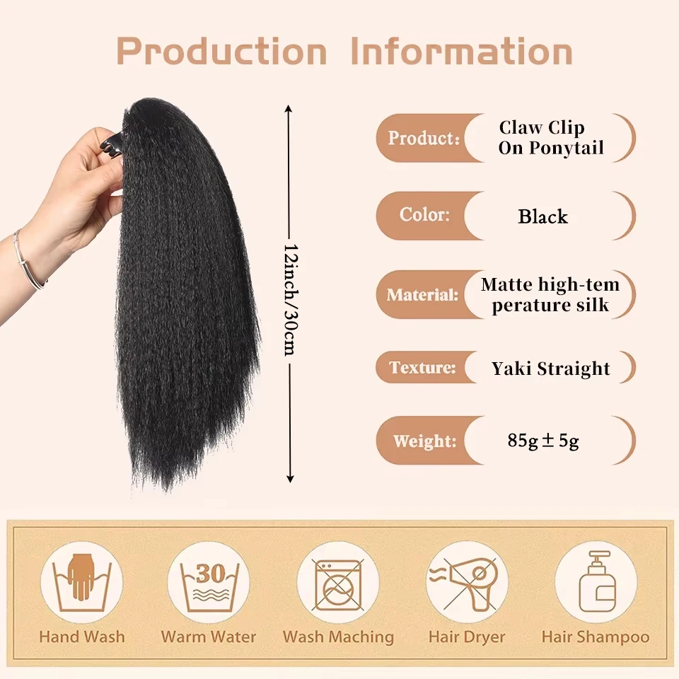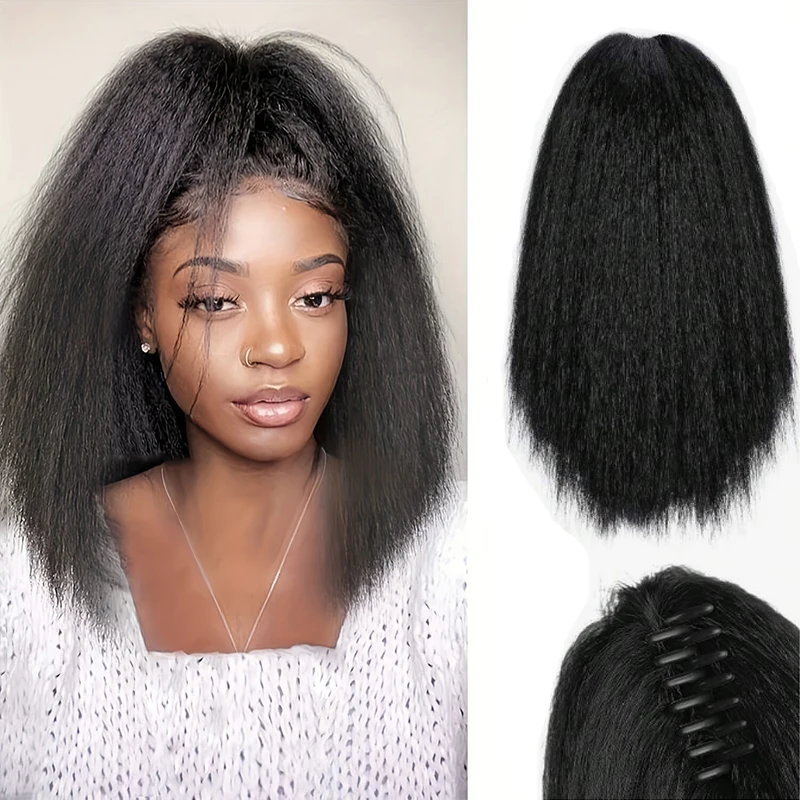 Obtenha volume e comprimento instantâneos com esta extensão de rabo de cavalo Yaki sintética! Ideal para mulheres negras que desejam um look elegante e natural em segundos. Fácil de prender, confortável e resistente ao calor, perfeita para uso diário, festas e eventos especiais. ✨