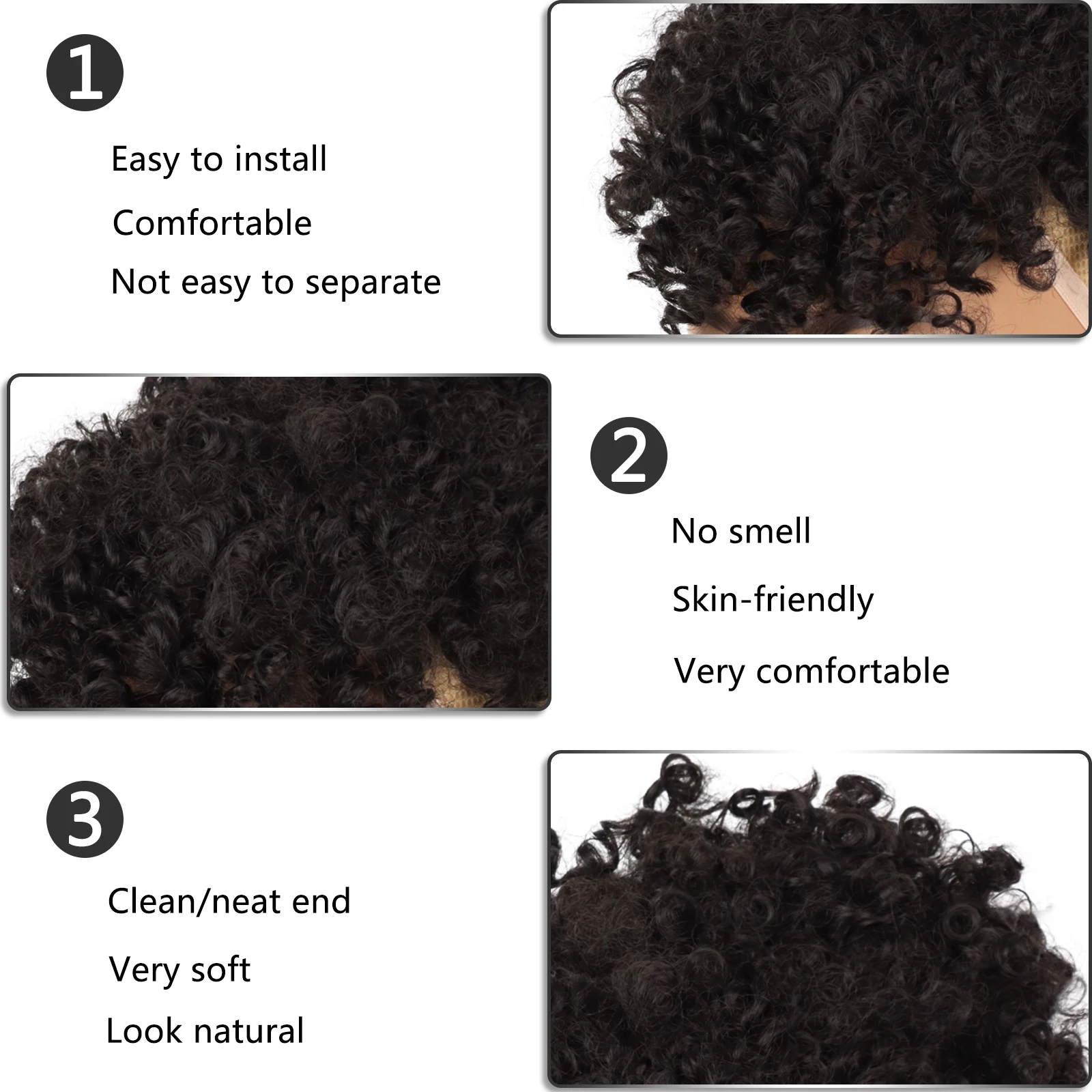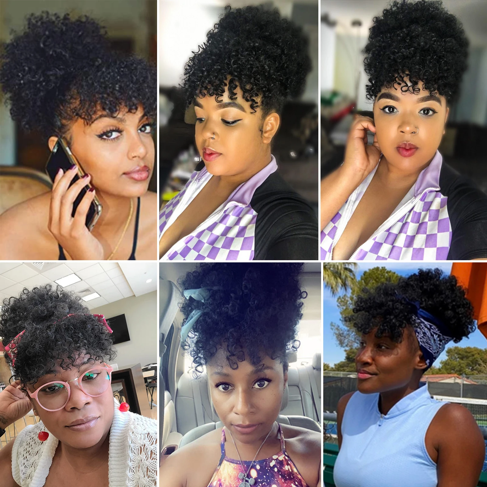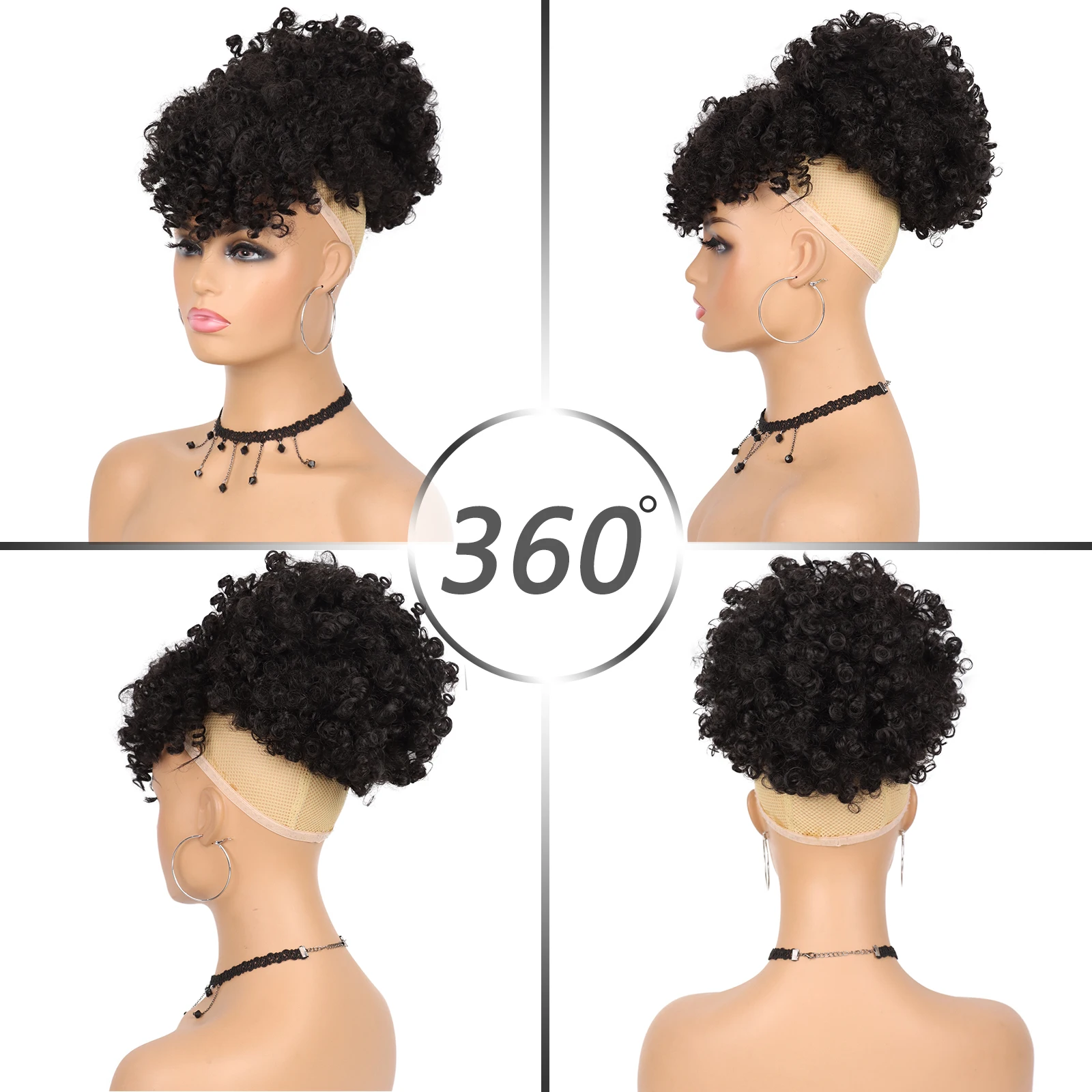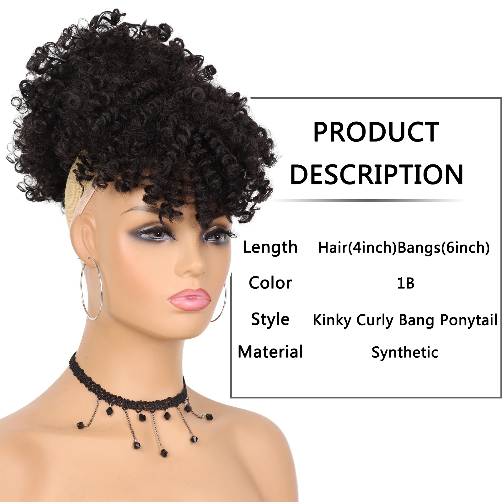 🖤✨ Extensão de Rabo de Cavalo Afro Alto Puff com Cordão e Franja – Cabelo Sintético Curto Encaracolado Natural