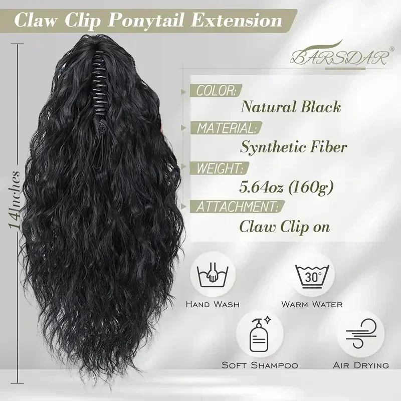 ✨ Extensão de Rabo de Cavalo Curto Ondulado 14″ com Garra