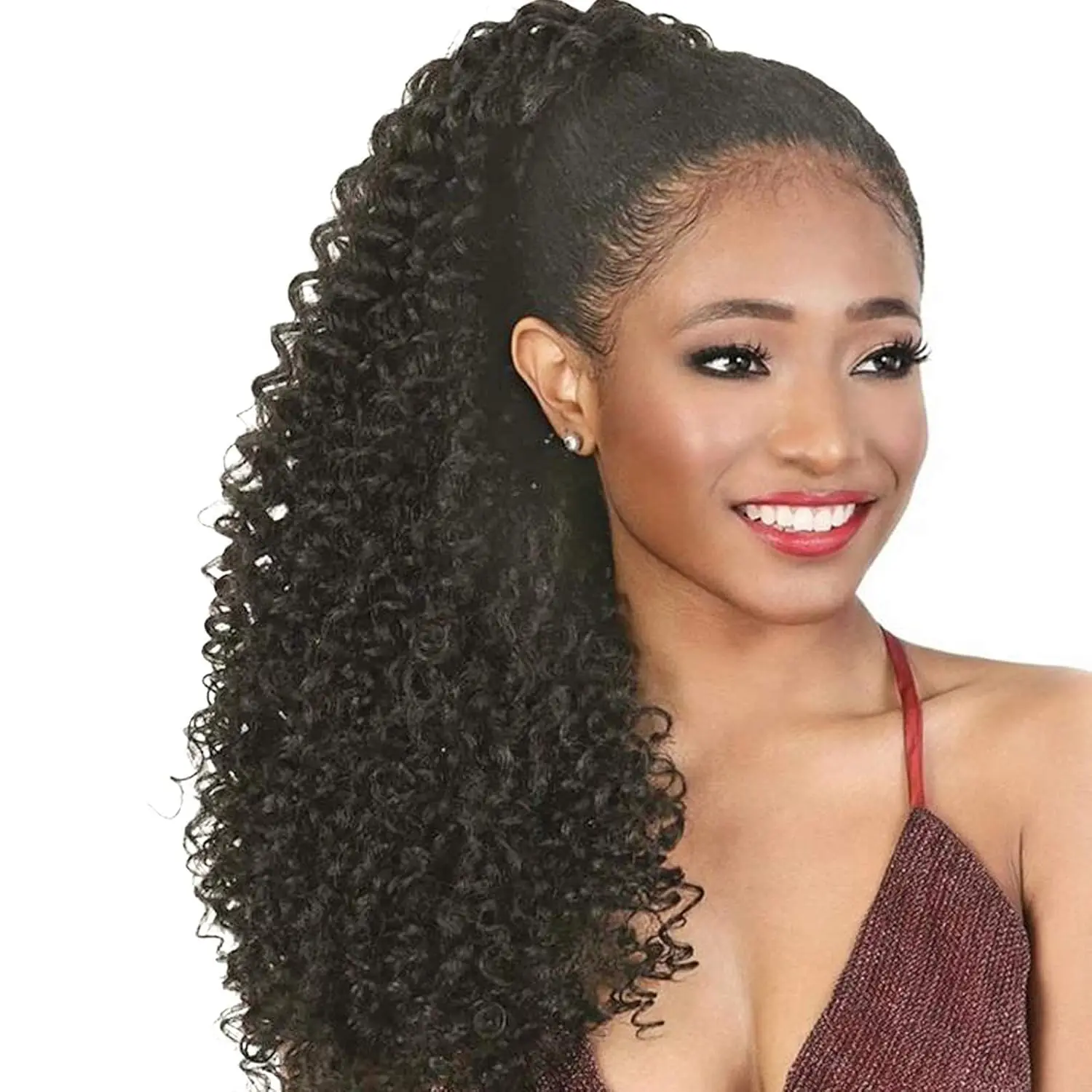 Início Rabo de Cavalo Sintético Extensão de Rabo de Cavalo Encaracolado 24 Polegadas – Cabelo Sintético Super Macio com Ondas Definidas