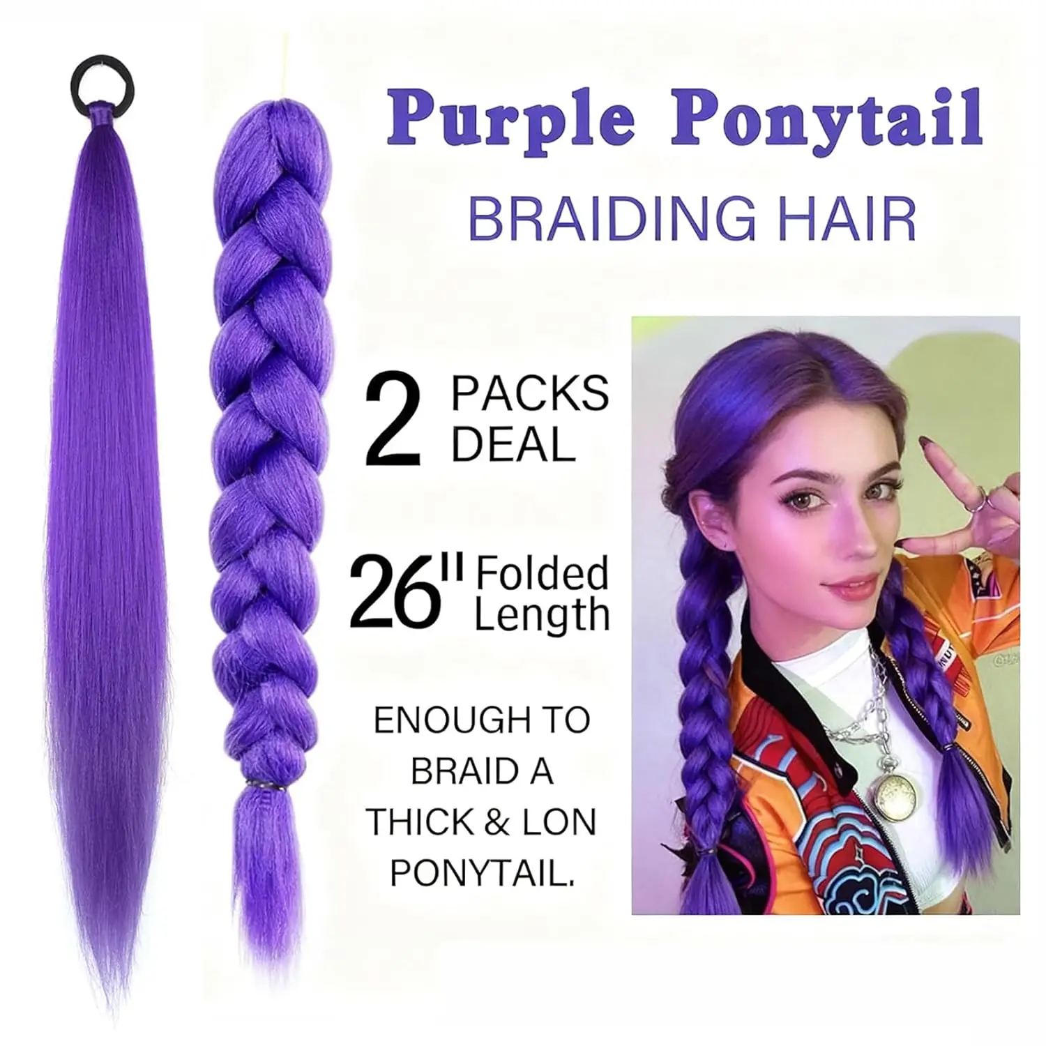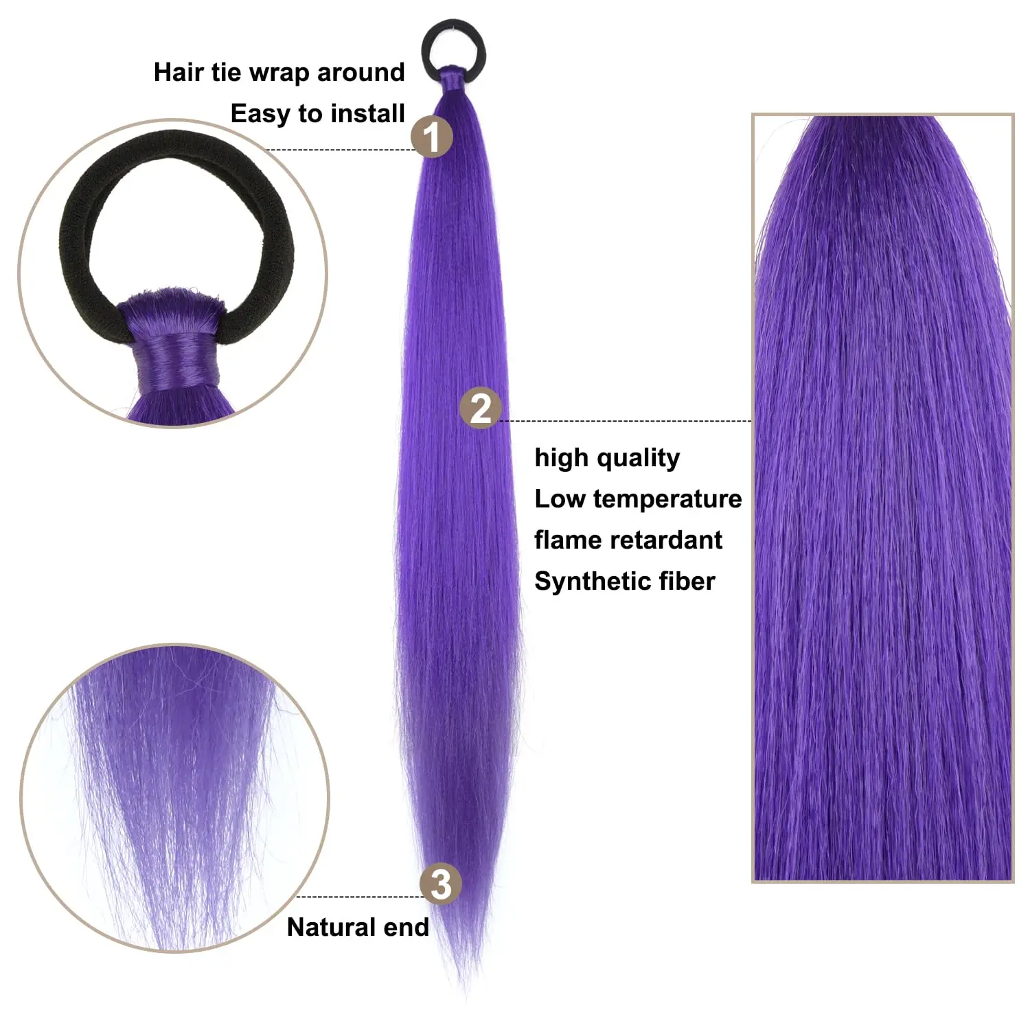 💜✨ Extensão de Rabo de Cavalo Roxo Longa Lisa – Fibra Sintética Resistente ao Calor ✨💜