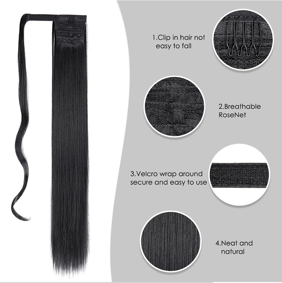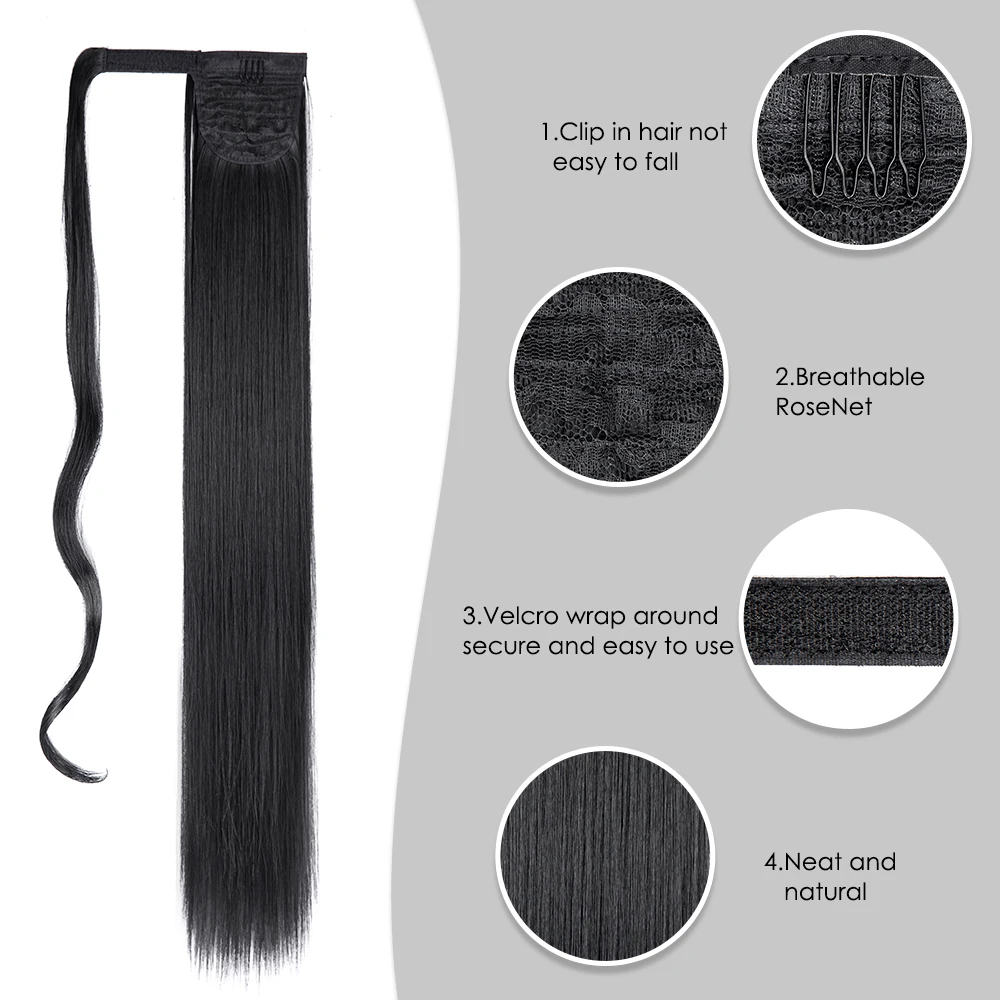 🌟 Extensão de Rabo de Cavalo Sintético Feminino – Longo, Liso e Ombre 85cm / 33 Polegadas com Presilha 🌟