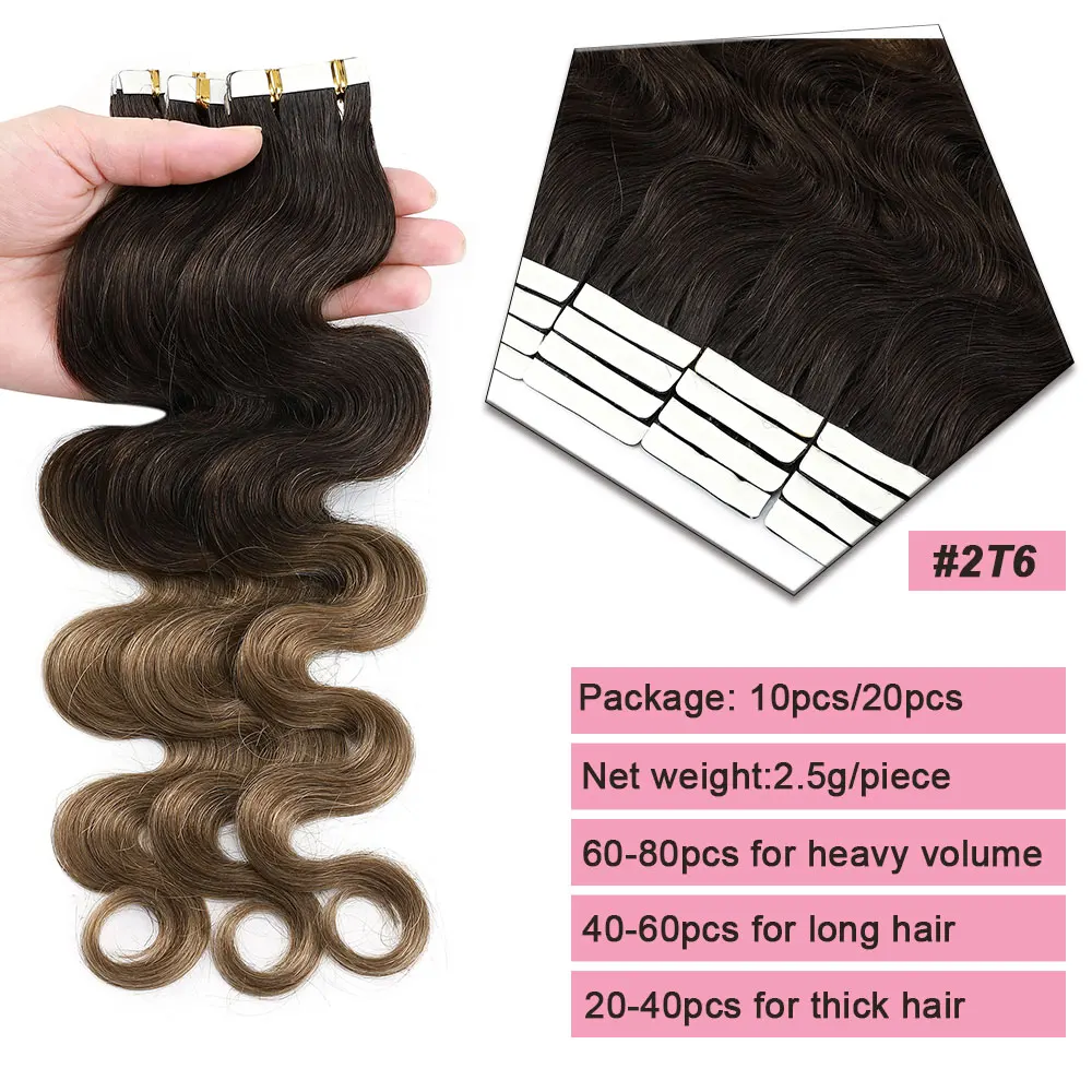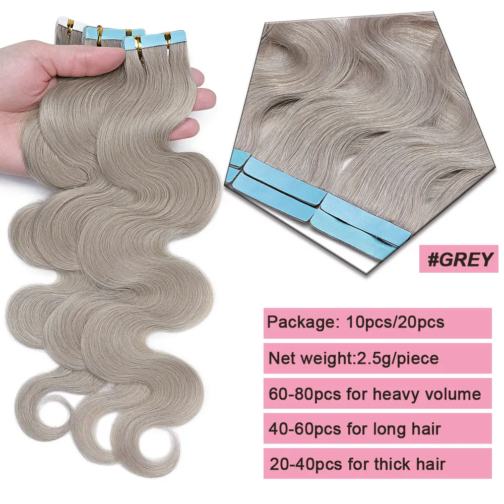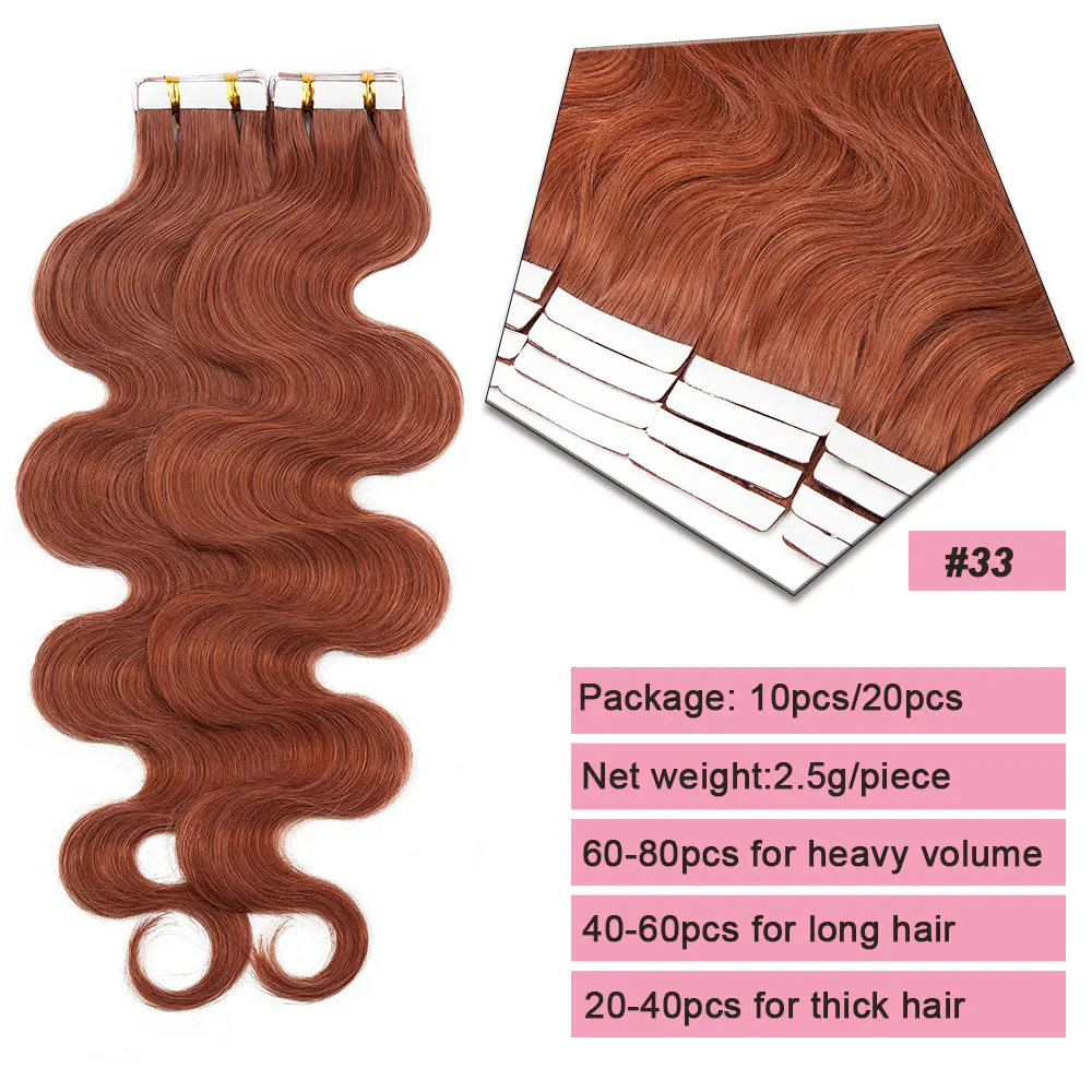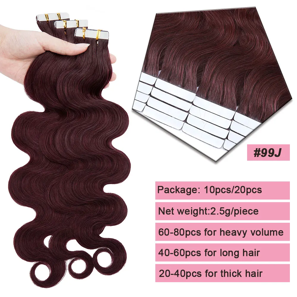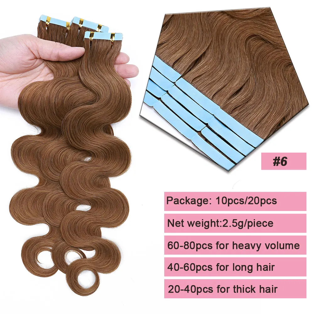 🌟 Extensões Adesivas de Cabelo Humano Ondulado para Mulheres – Fita de Pele Natural, 14 a 24 Polegadas, 20 Peças 🌟