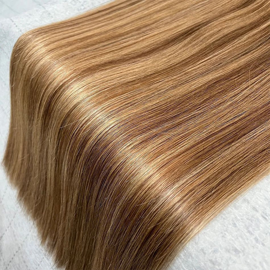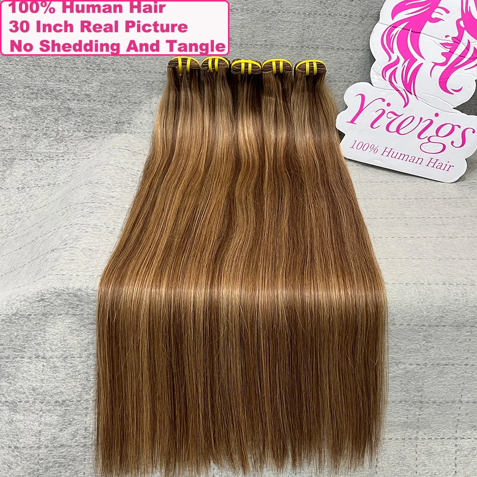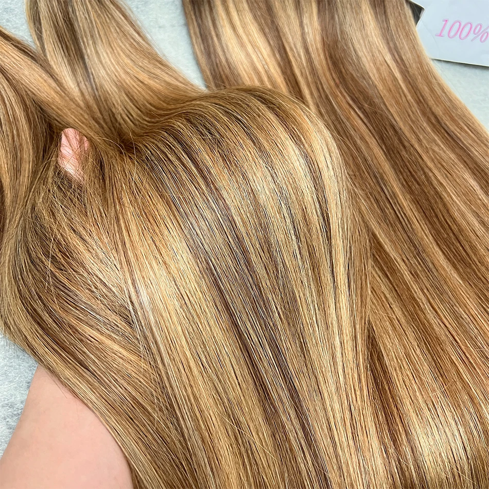 💁♀️ Extensões de Cabelo Humano Castanho com Luzes – Liso, 100% Natural, 10A, 10-24″, Cor #4/27 💁♀️