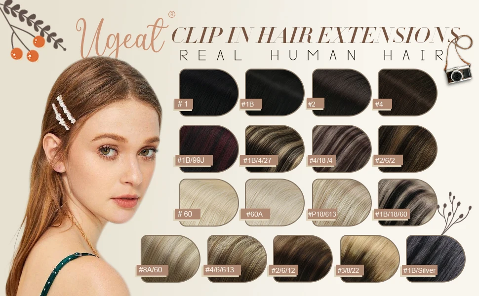 Transforme seu visual com as extensões de cabelo humano Ugeat, feitas com 100% cabelo brasileiro natural liso e textura sedosa. O acabamento balayage loiro oferece um toque moderno e sofisticado, perfeito para dar volume, comprimento e um brilho natural aos seus fios. Fácil de aplicar com presilhas resistentes, ideal para quem busca praticidade sem abrir mão da elegância. 💁♀️💖