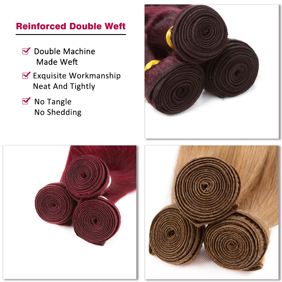 ✨ Extensões de Cabelo Humano Liso Brasileiro – Trama Dupla Remy Ombre Loiro 27# e Borgonha 99J (1 a 4 Pacotes) ✨