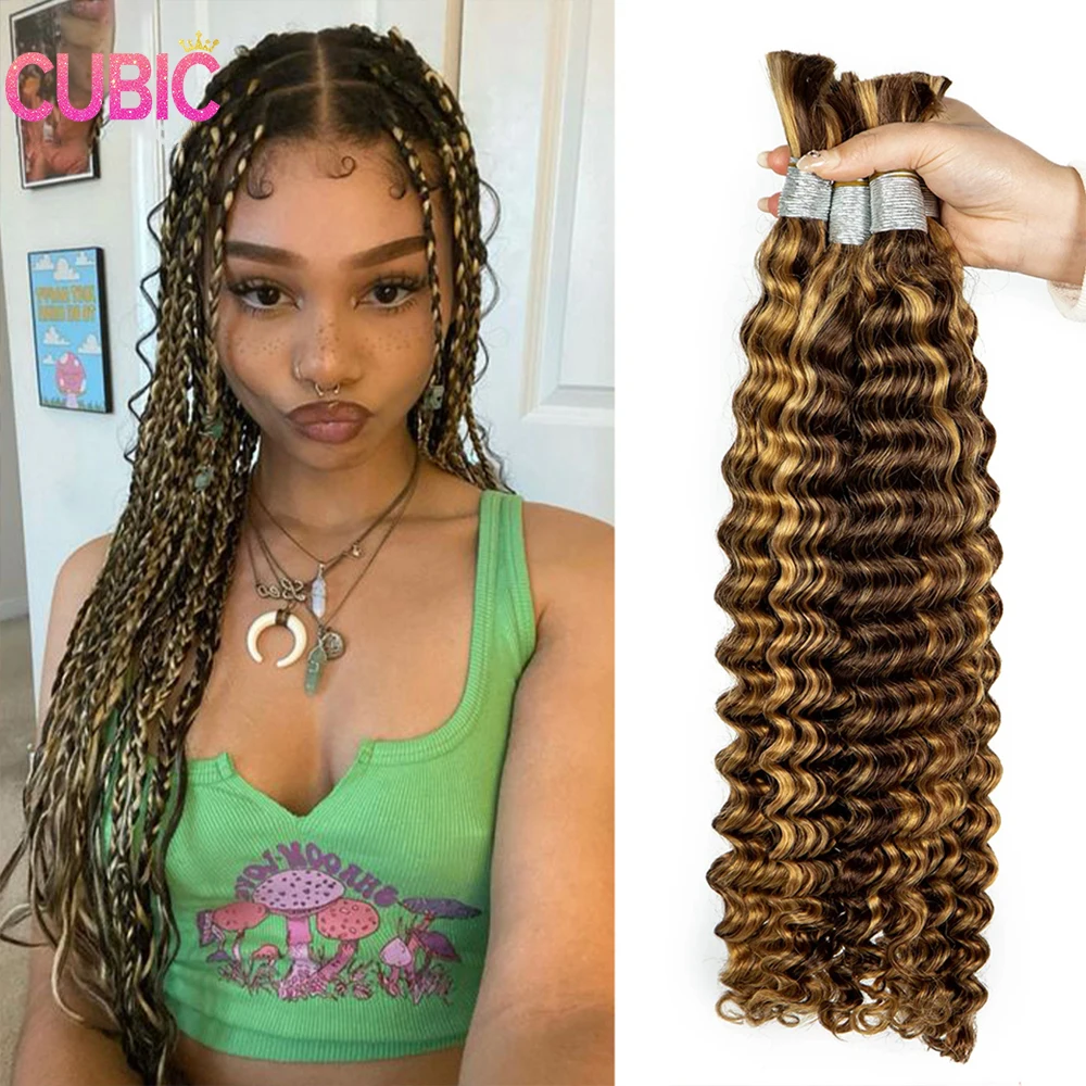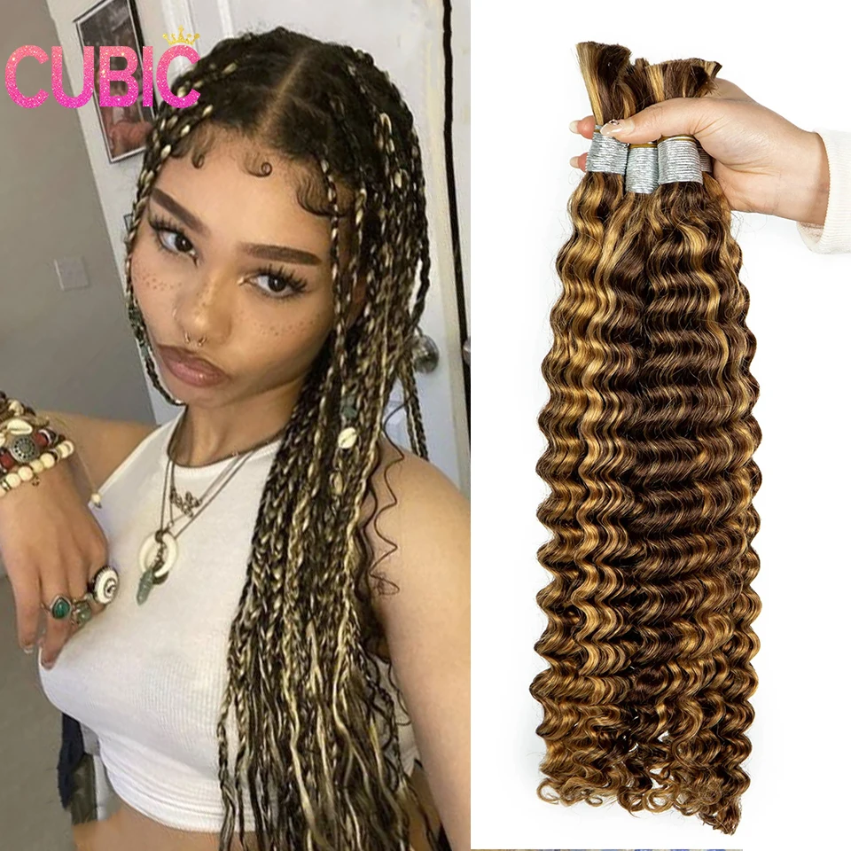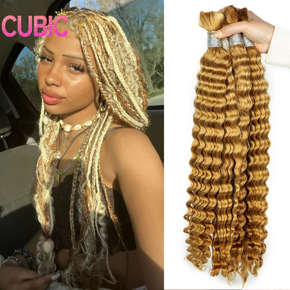 ✨ Extensões de Cabelo Humano Loiro Mel, Onda Profunda, Sem Trama, Perfeitas para Tranças, Cor #27 ✨