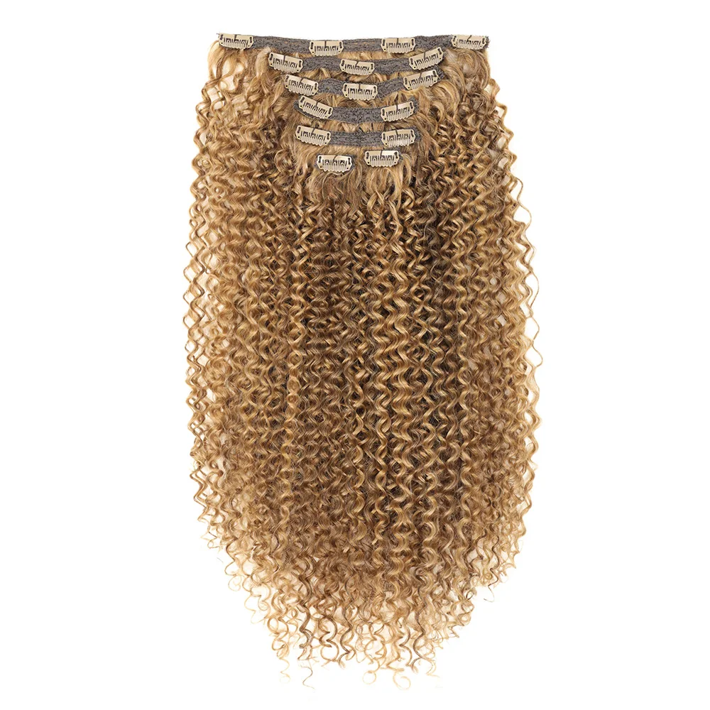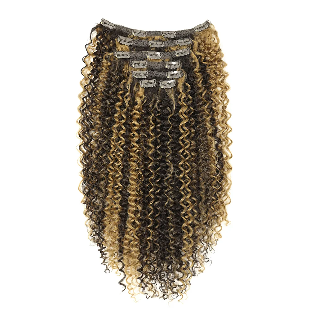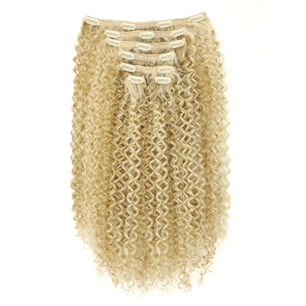 ✨ Extensões de Cabelo Sintético Loiro Cacheado com Clipe – Kit Completo 7 Peças Remy Brasileiro Natural ✨