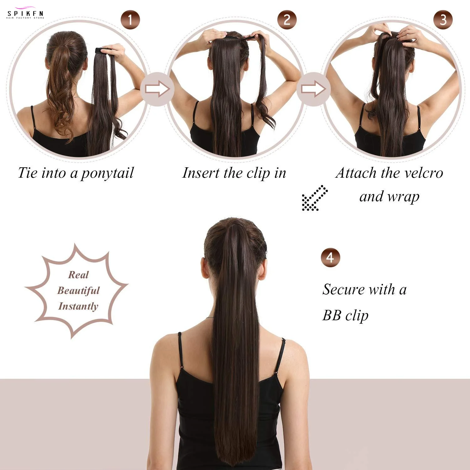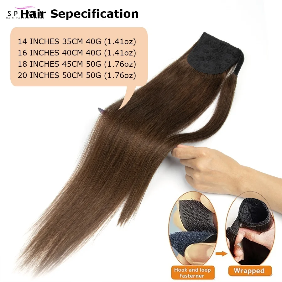 ✨ Rabo de Cavalo em Cabelo Humano Brasileiro Remy – Liso, Natural, Marrom Escuro, 14-22″ com Clipes ✨