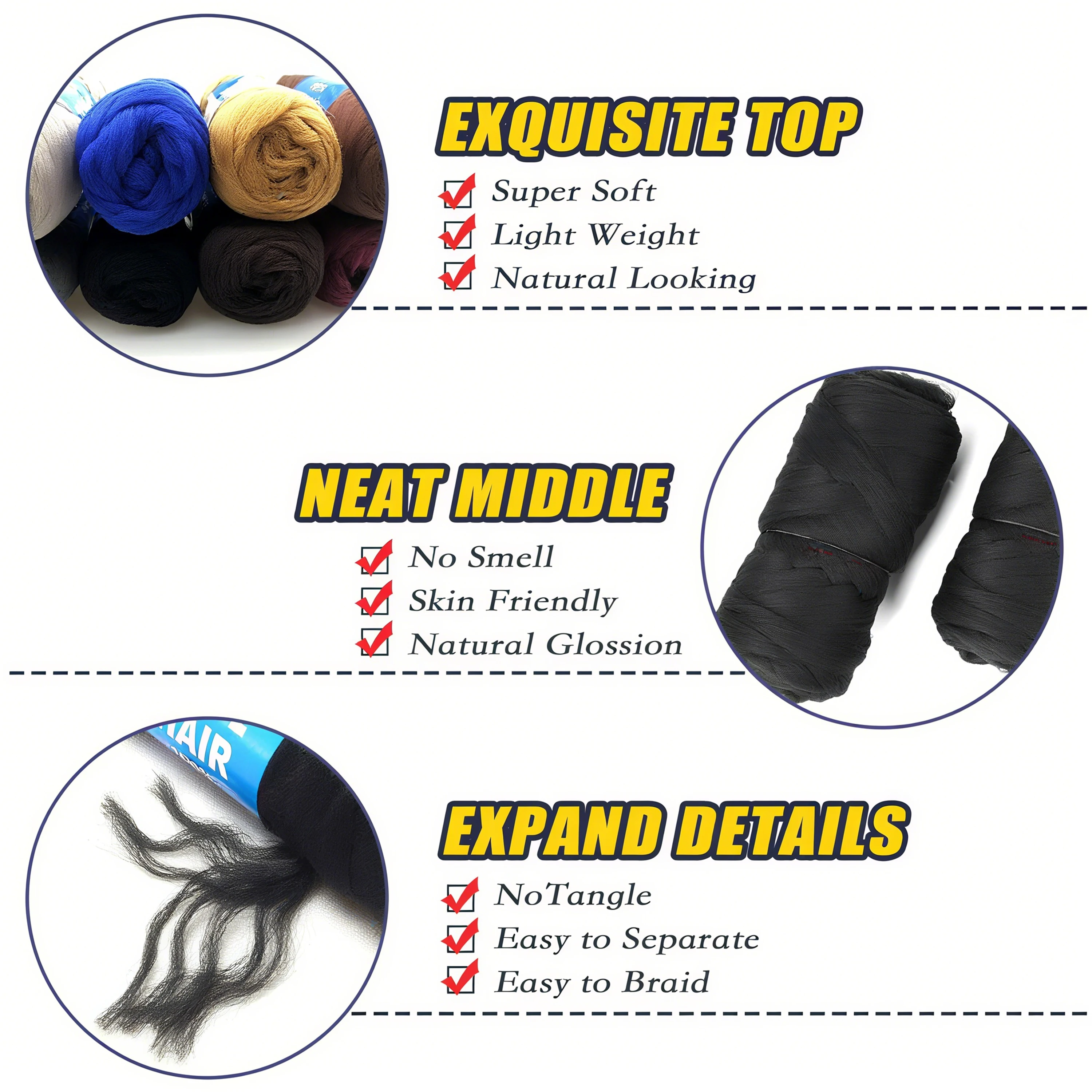 ✔️ Ideal para tranças africanas, torção senegalesa e dreadlocks falsos