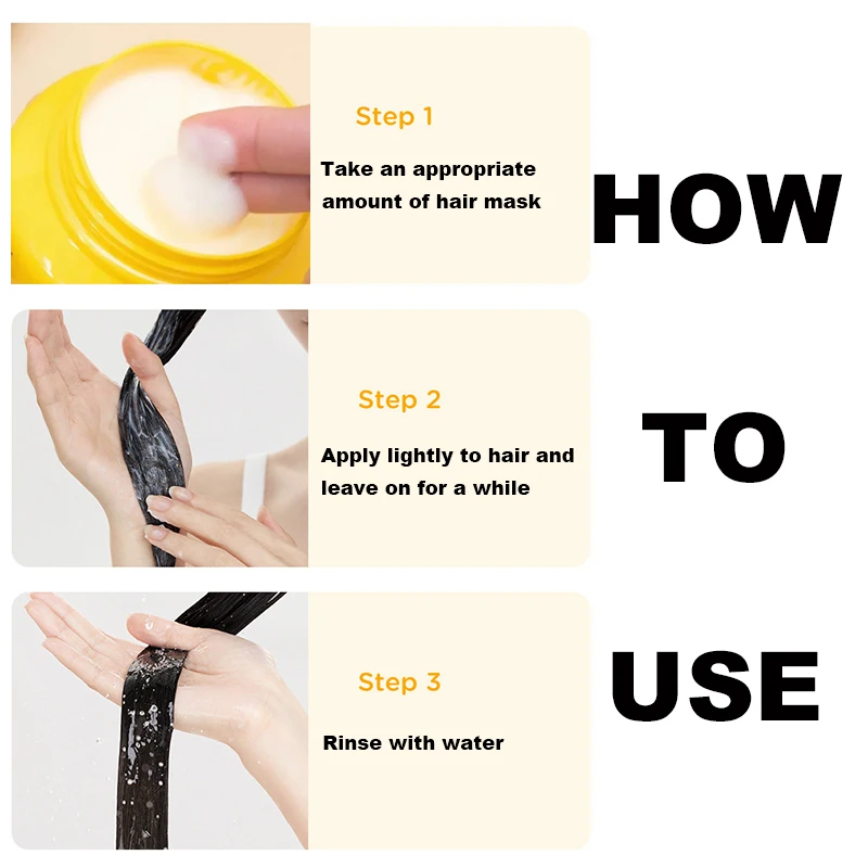 ▶ Passo 1: Após enxaguar o cabelo, remova o excesso de água e aplique uma quantidade adequada do produto no cabelo.