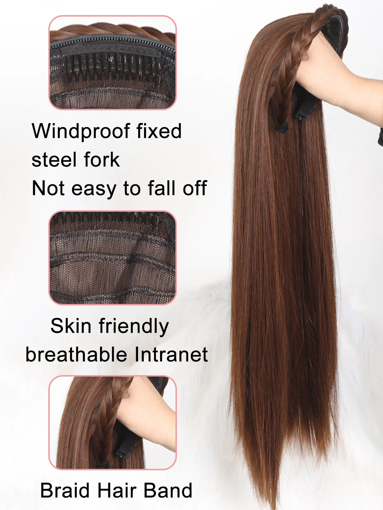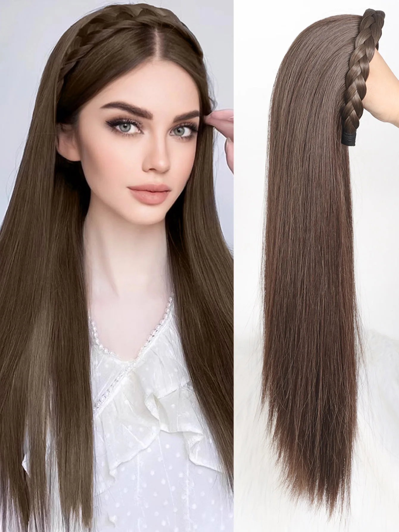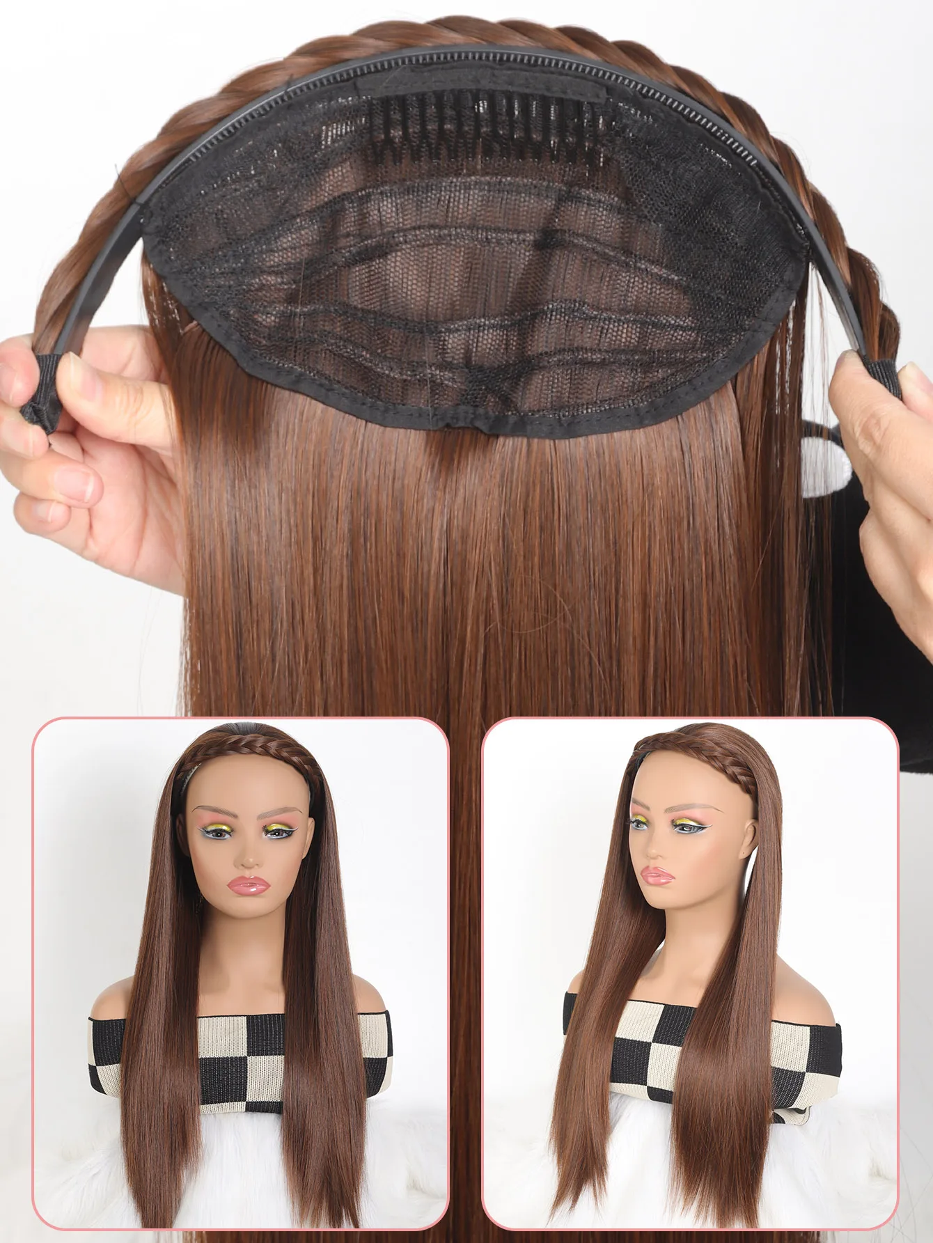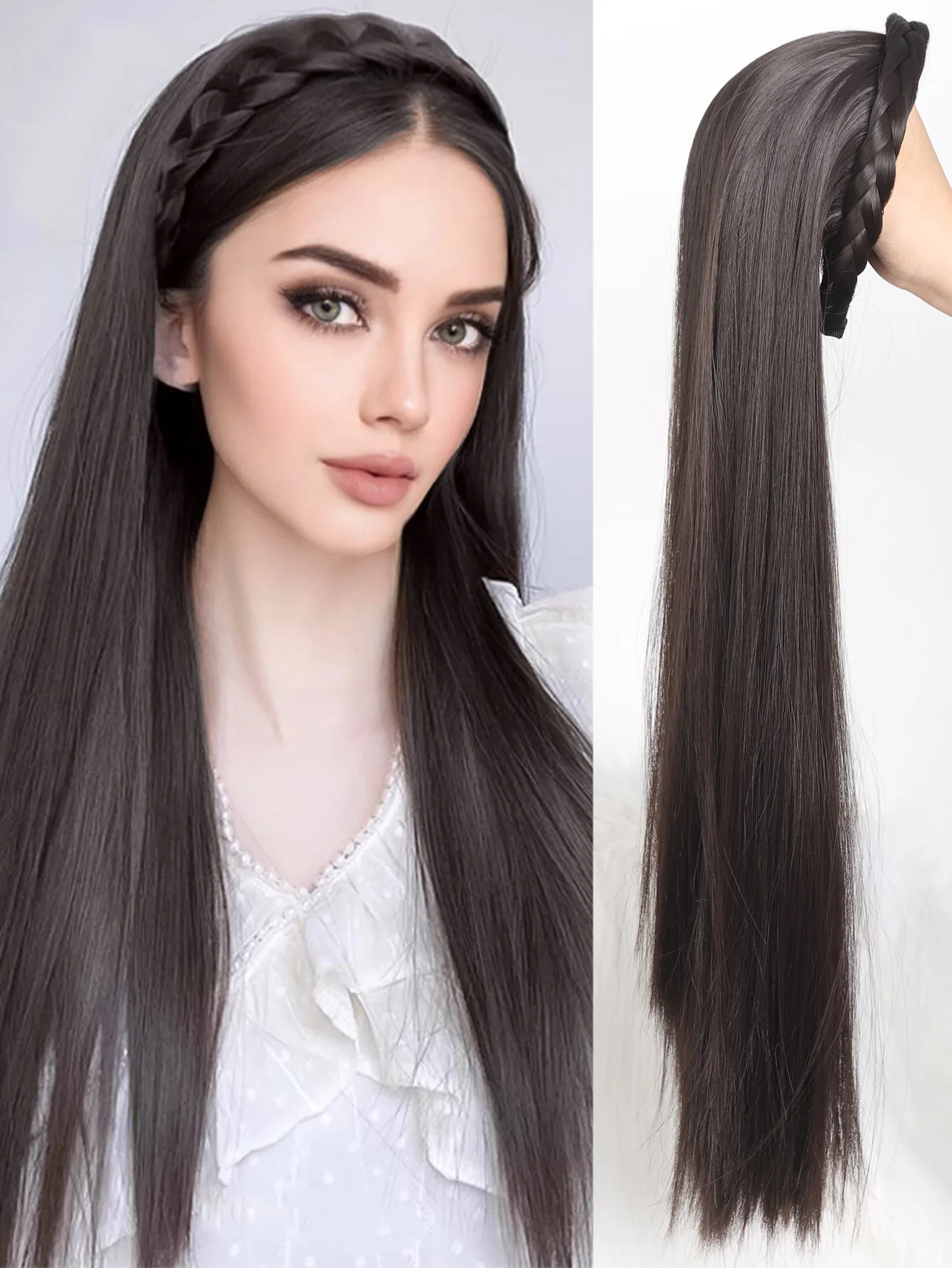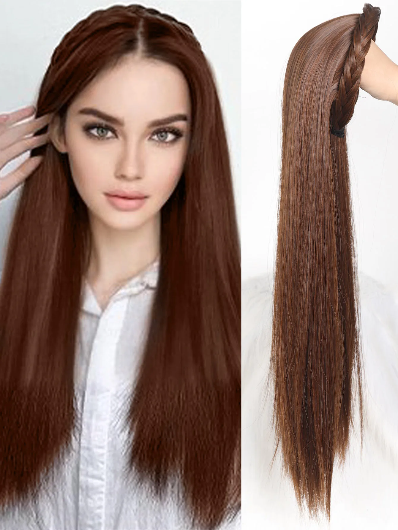 🌟 Meia Peruca Sintética Longa Reta com Bandana 🌟