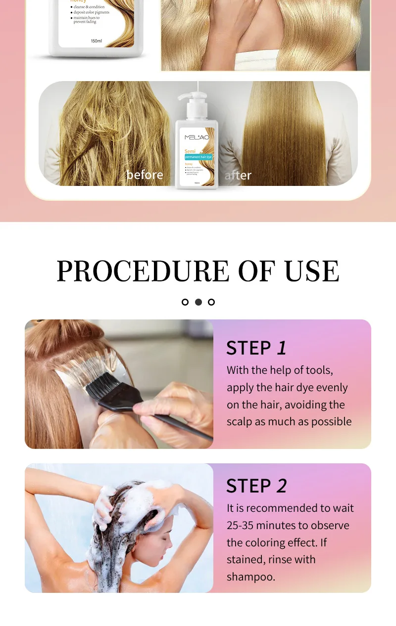 Esqueça processos demorados. Com o shampoo condicionador tonalizante MELAO, você:
