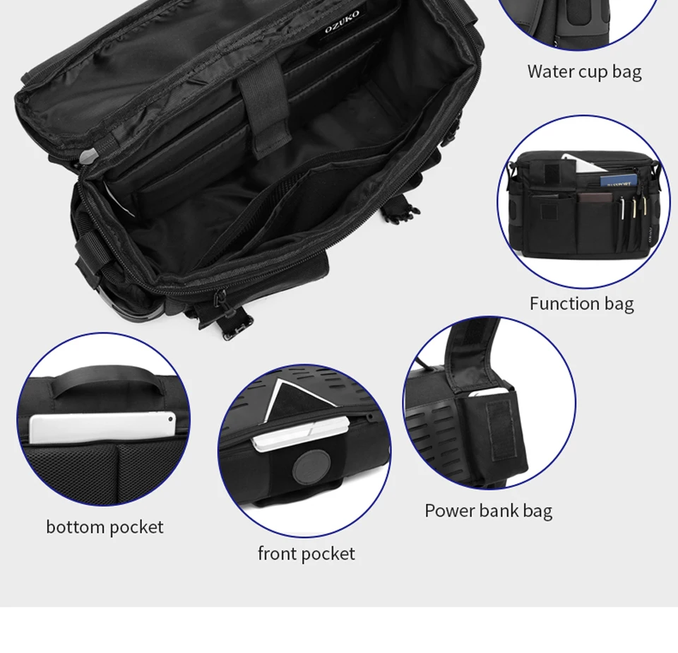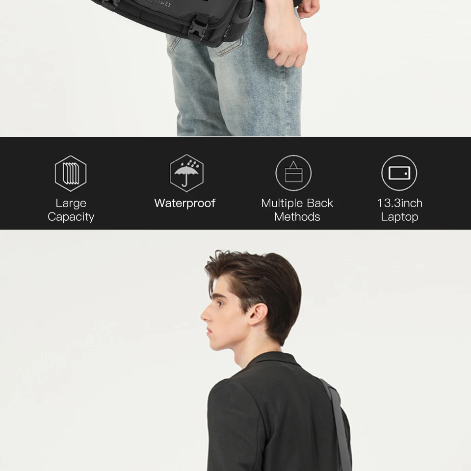 OZUKO – Bolsa de Ombro Masculina – Grande Capacidade, Resistente à Água, Estilo Mensageiro para Viagem e Uso Diário 💼🌟