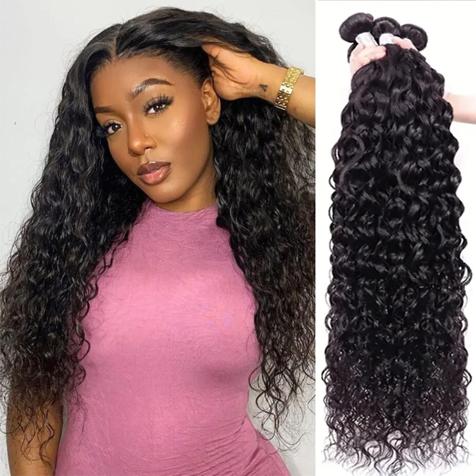Pacotes de Cabelo Humano Onda de Água Cacheados Profundos Malásia Preto Natural 100% Cabelo Remy Cru – Extensões Capilares de Alta Qualidade