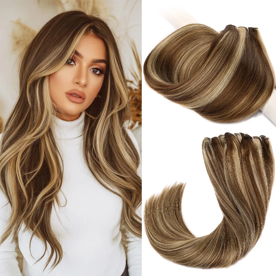🌟✨ Pacotes de Cabelo Humano Remy Europeu Reto – Extensões de Trama Marrom e Loiro | 35 a 70 cm ✨🌟