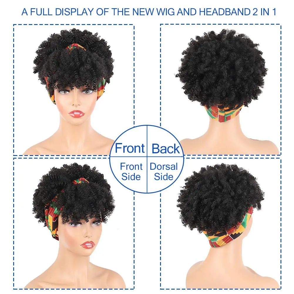 Peruca Afro Curta com Bandana – Cabelo Sintético Encaracolado, Estilo Cacheado com Franja 🌟💁♀️