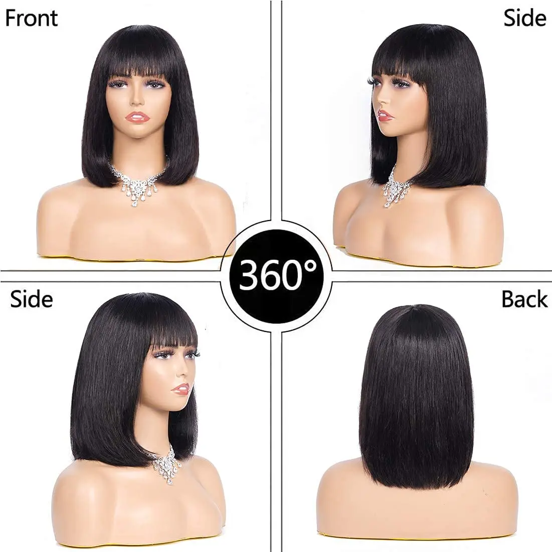 💇♀️✨ Peruca Bob Curta Lisa 100% Cabelo Humano com Franja – Densidade 200% | Preto Natural (1B) ✨💇♀️
