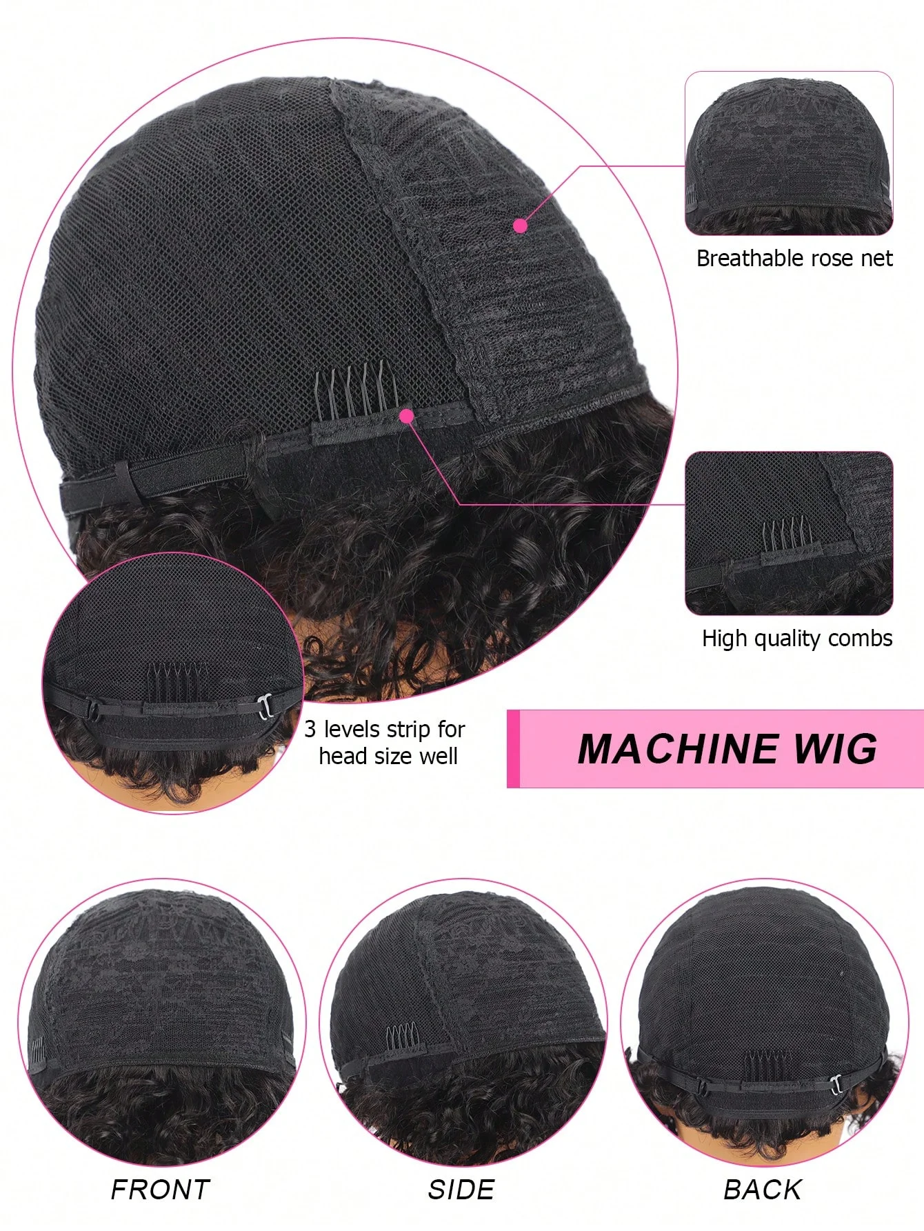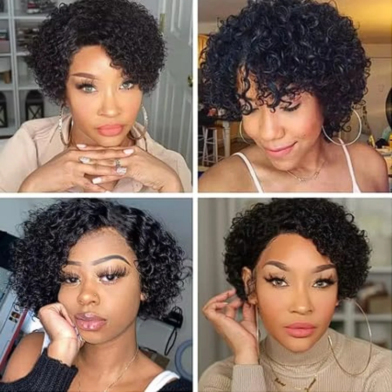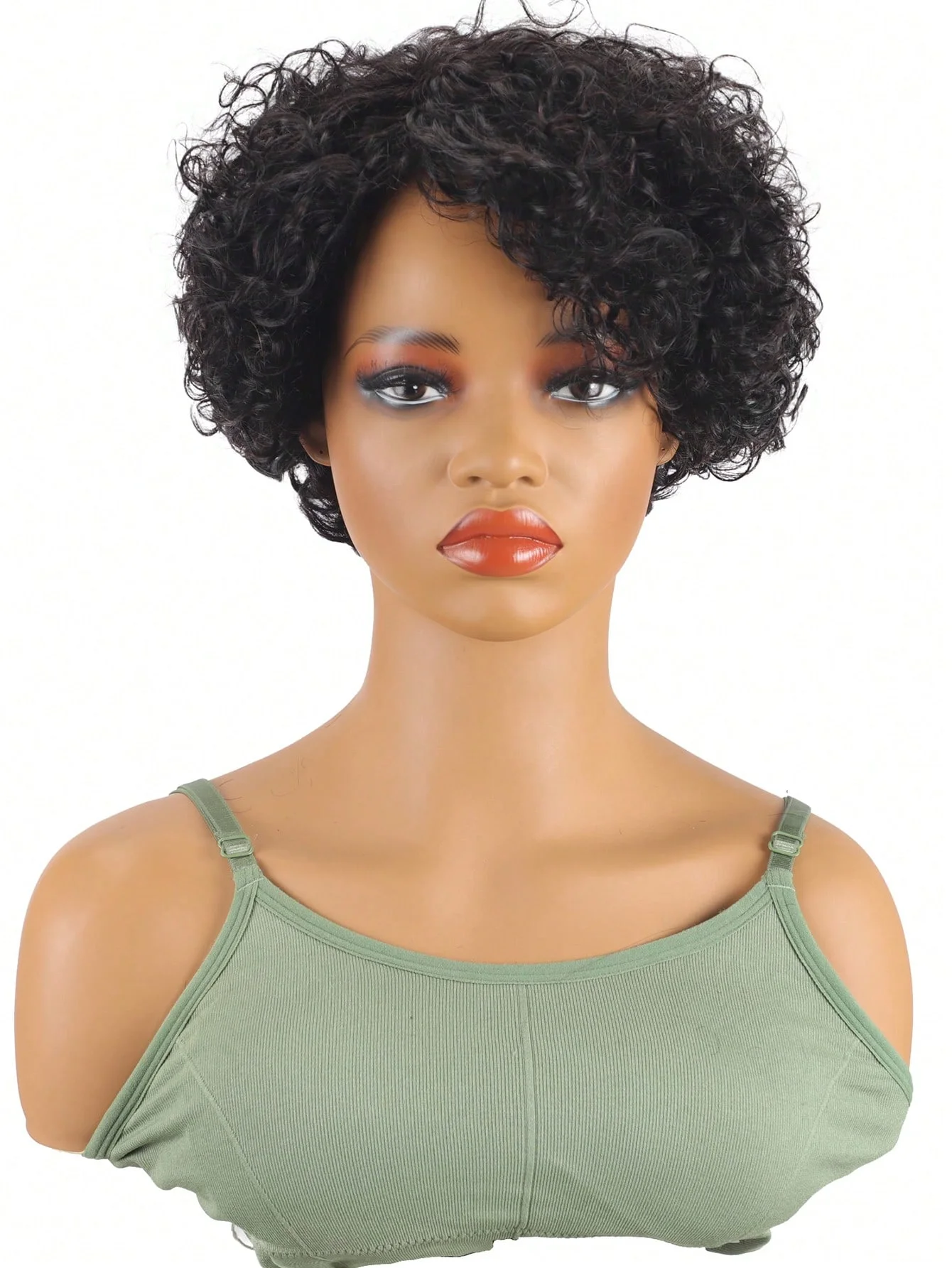 💇🏾♀️ Peruca Curta Encaracolada Estilo Pixie – Cabelo Humano Brasileiro Remy, Modelo Kinky com Volume Natural, Sem Lace e Feita à Máquina ✨