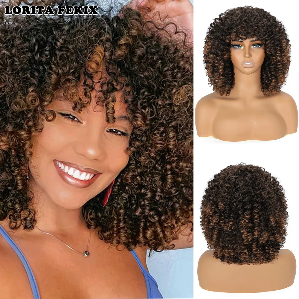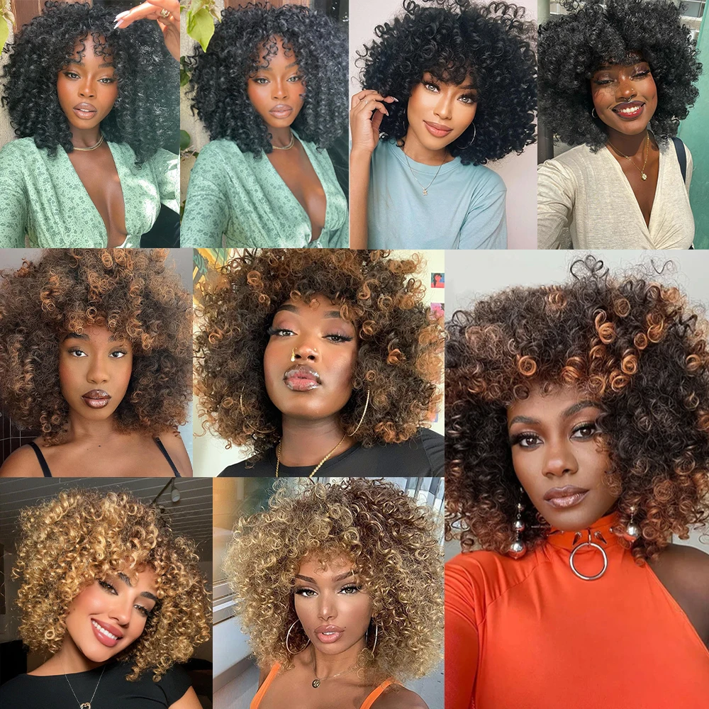 ✨ Peruca Curta Loira Afro Cacheada com Franja ✨