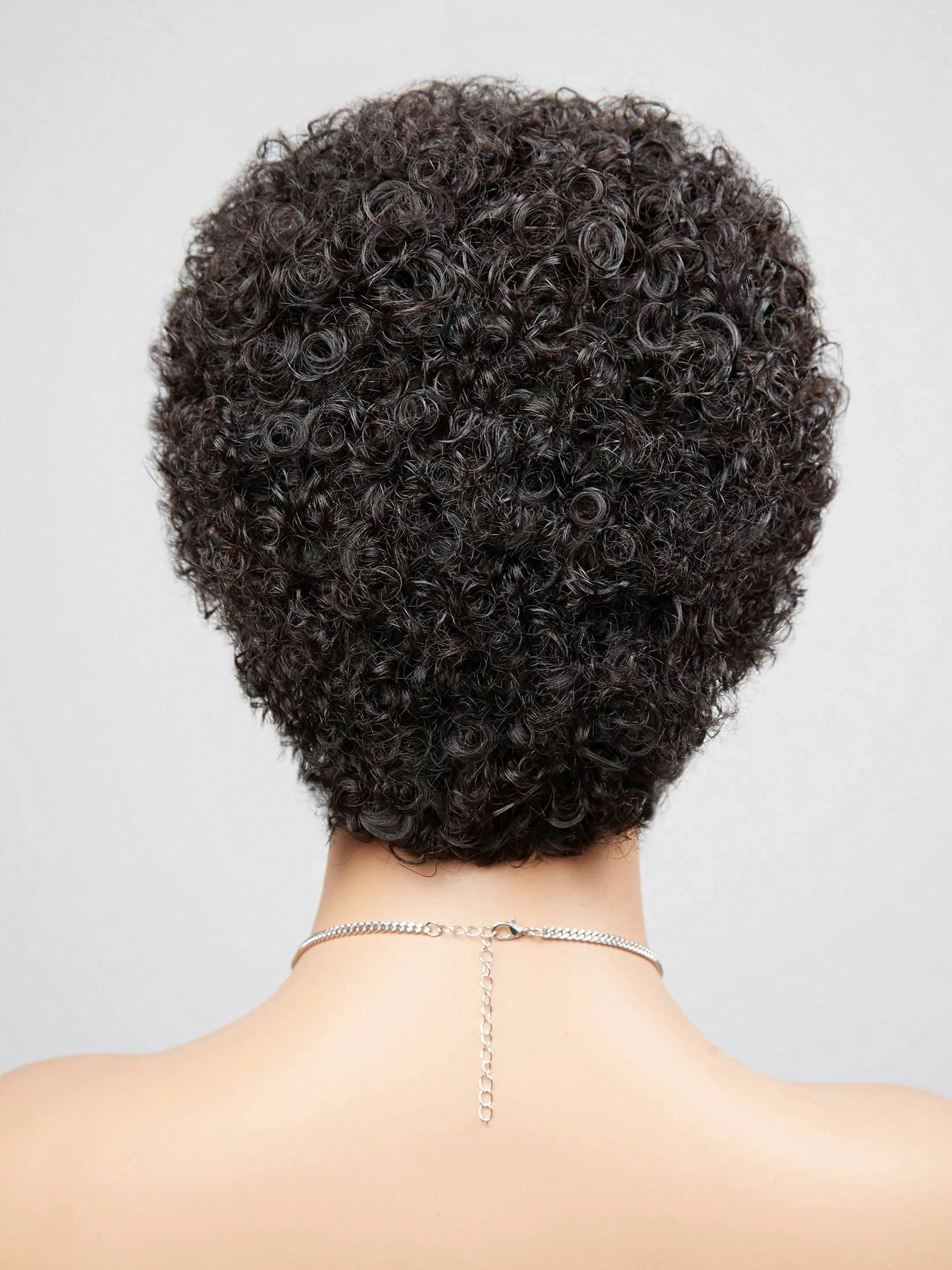 Peruca Curta Pixie Afro Cacheado Jerry de Cabelo Humano Brasileiro Preto Natural
