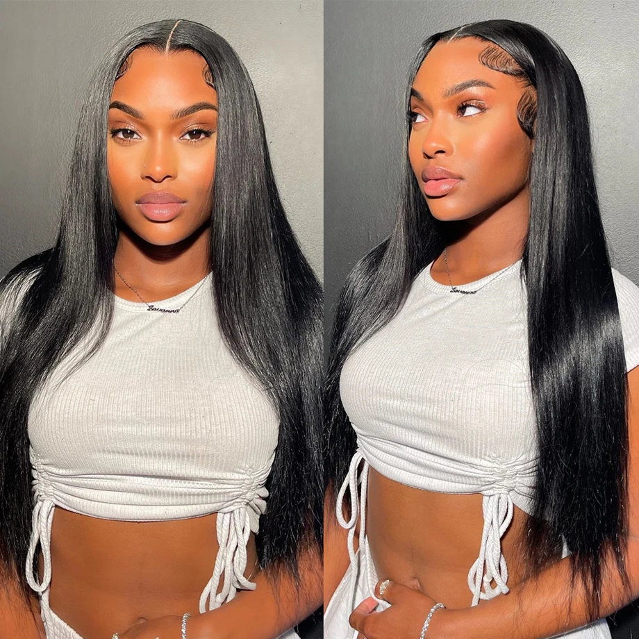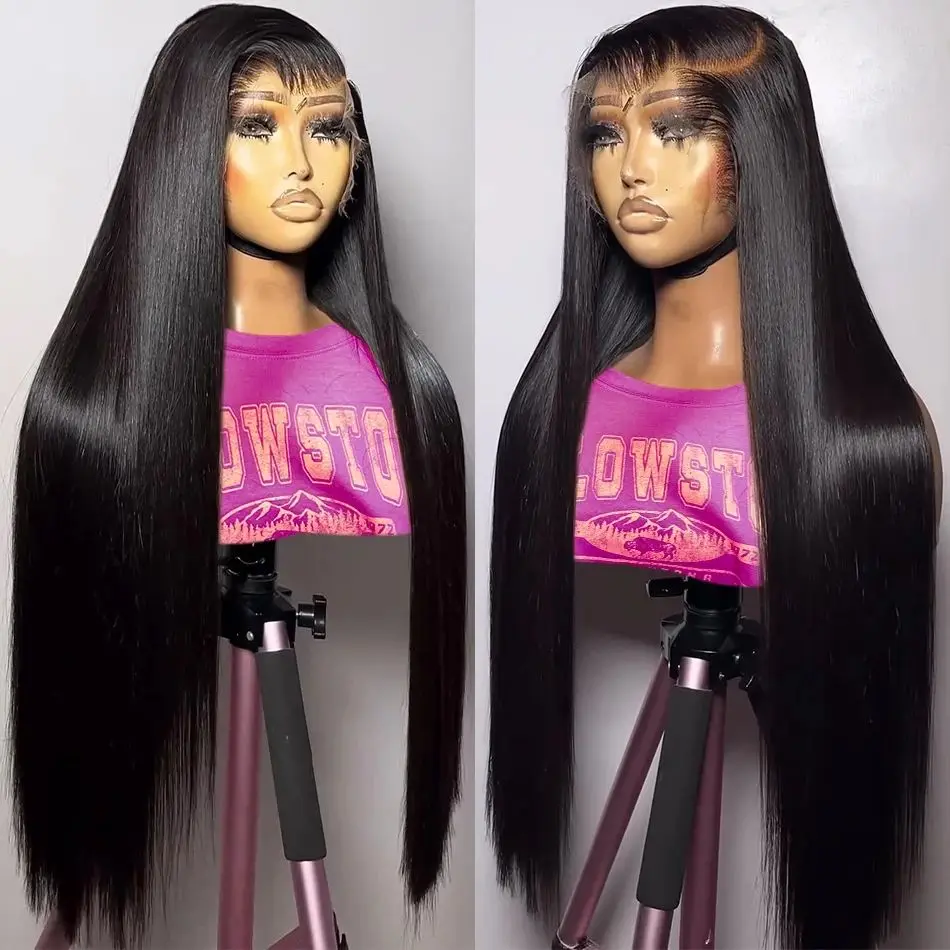 Perucas Brasileiras de Cabelo Liso, HD Transparente, 30-34 polegadas