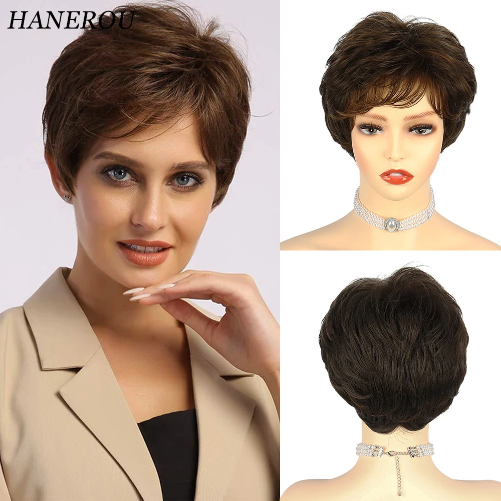 💇♀️ Peruca Feminina Curta Sintética Hanerou Pixie Marrom Reta – Resistente ao Calor para Festa, Cosplay e Uso Diário ✨