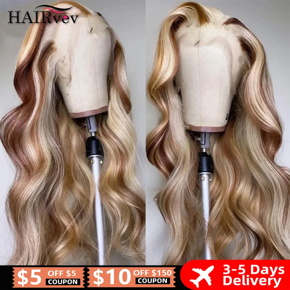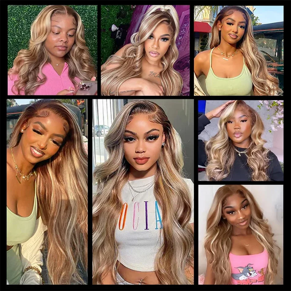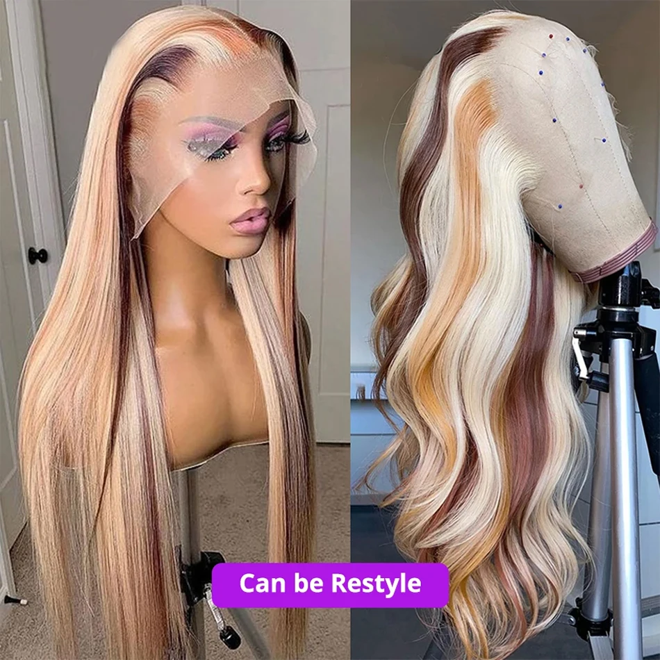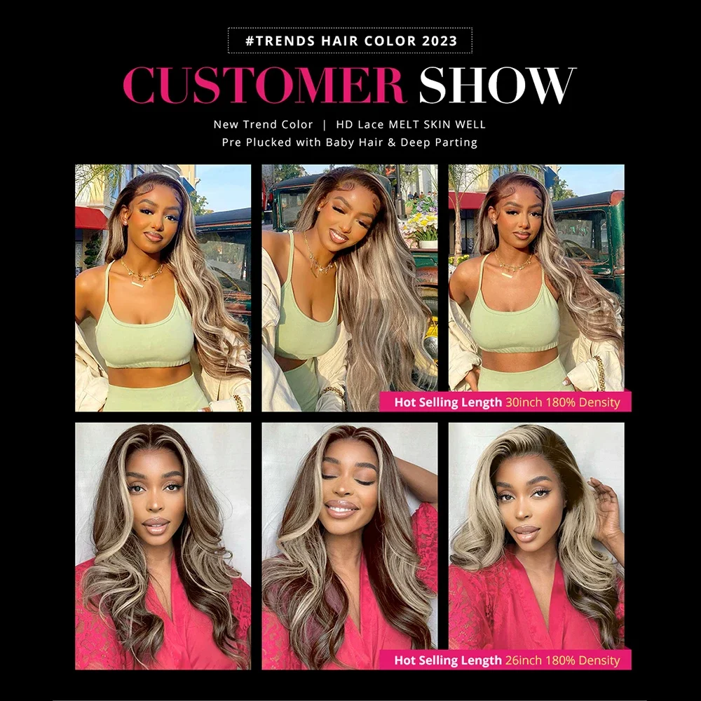 ✨ Peruca Frontal HD 13×4 Cabelo Humano Brasileiro Ondulada Loiro Acinzentado com Mechas 4/613 ✨