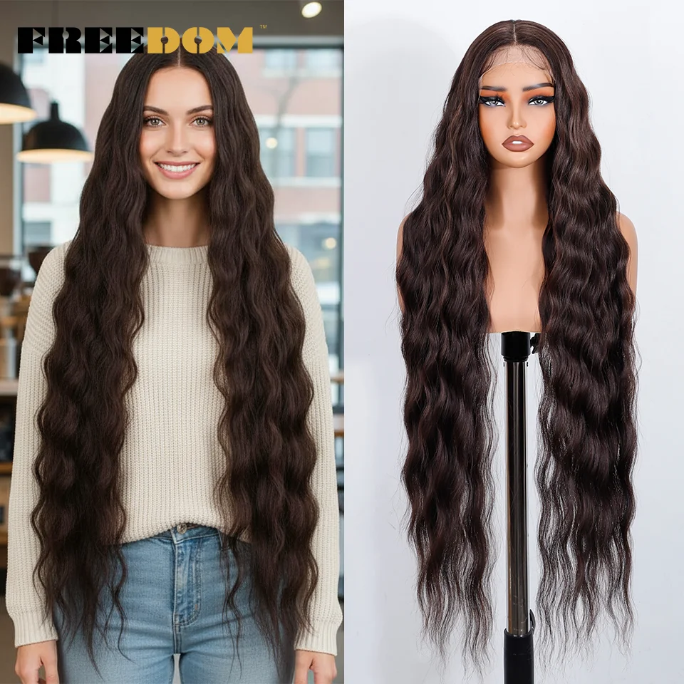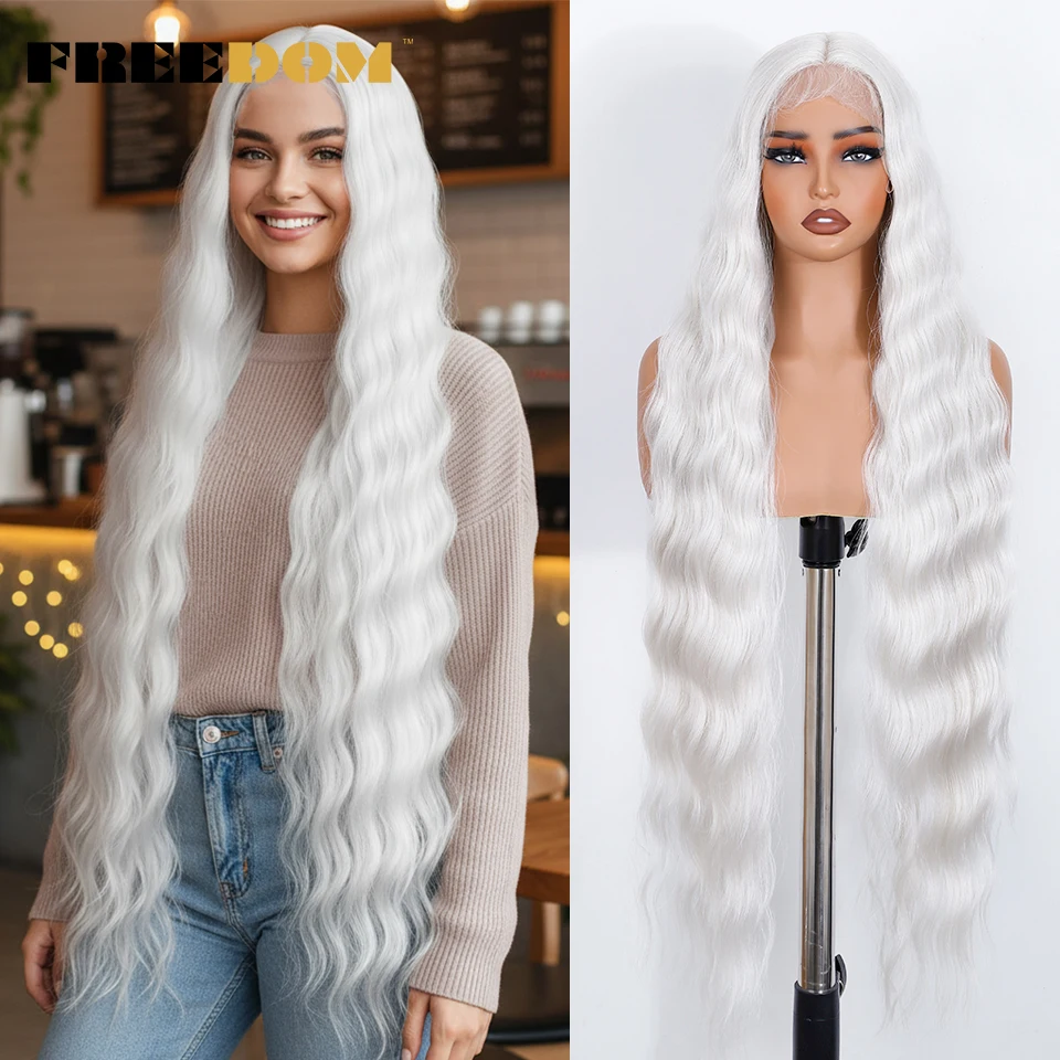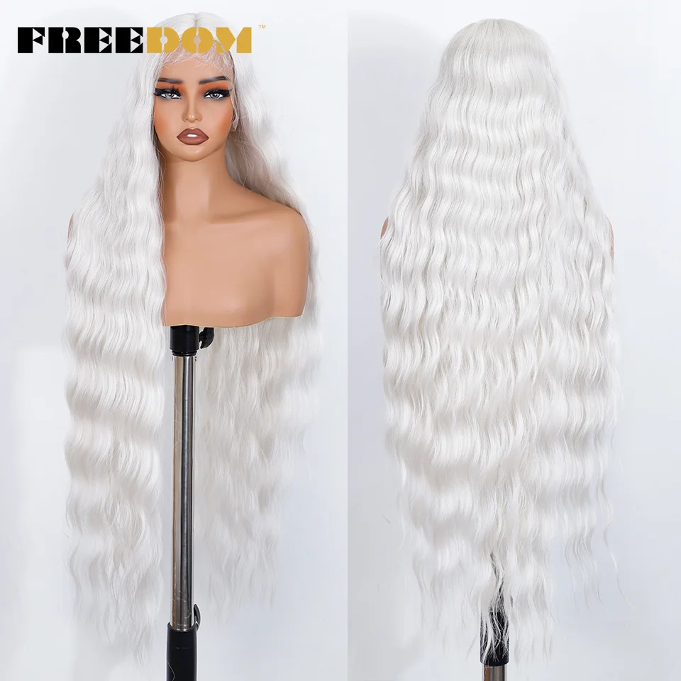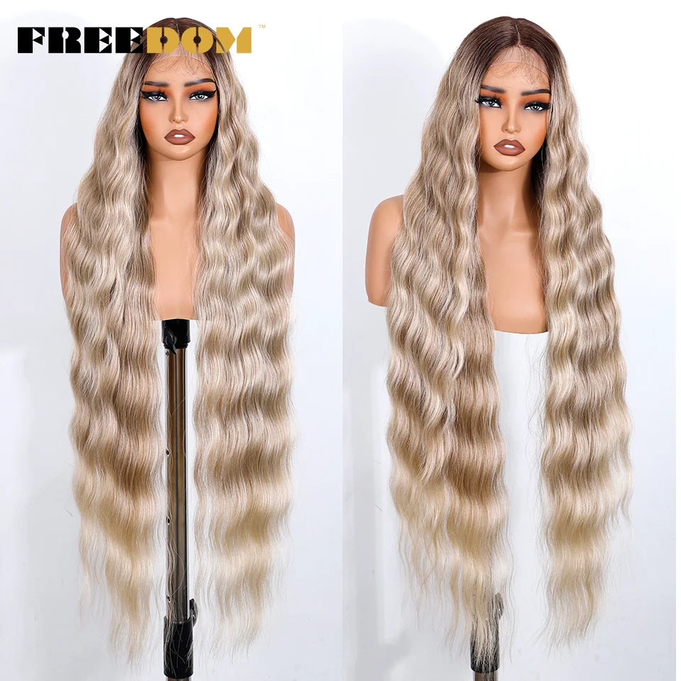 🤍✨ Peruca Lace Frontal Sintética Feminina 36 Polegadas Ondulada com Ombré Loiro Branco ✨🤍