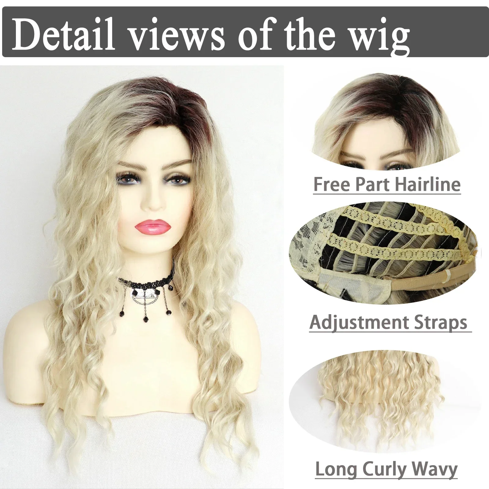 ✨ Peruca Longa Loiro Ombre Ondulada com Raiz Escura – Fibra Sintética Parte Livre ✨