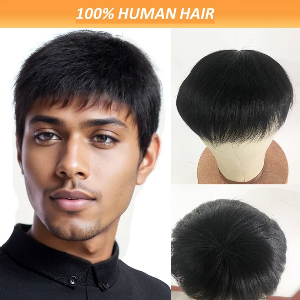 ✨ Peruca Masculina 100% Cabelo Humano – Prótese Capilar com Clipes 16x18cm ✨